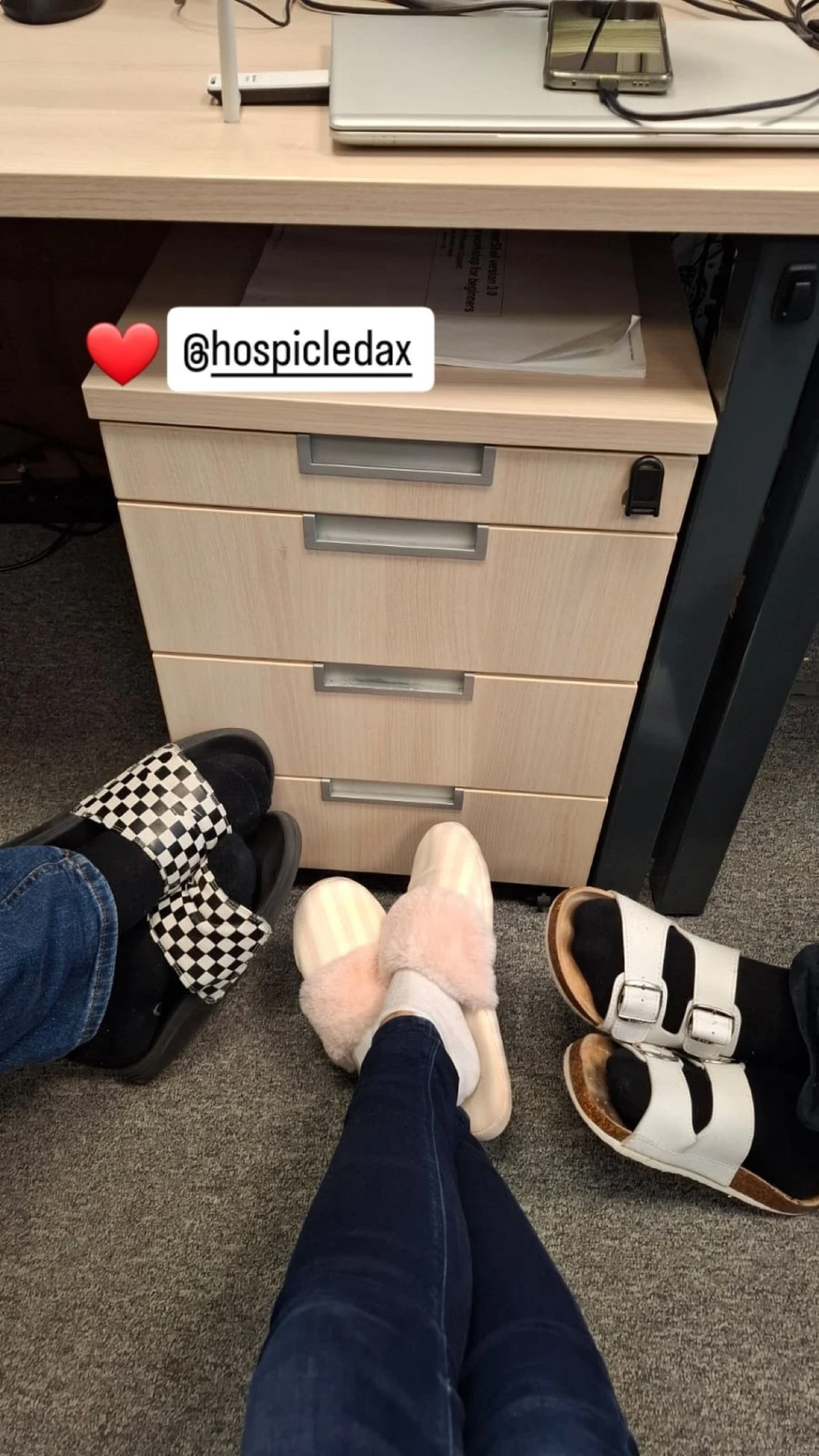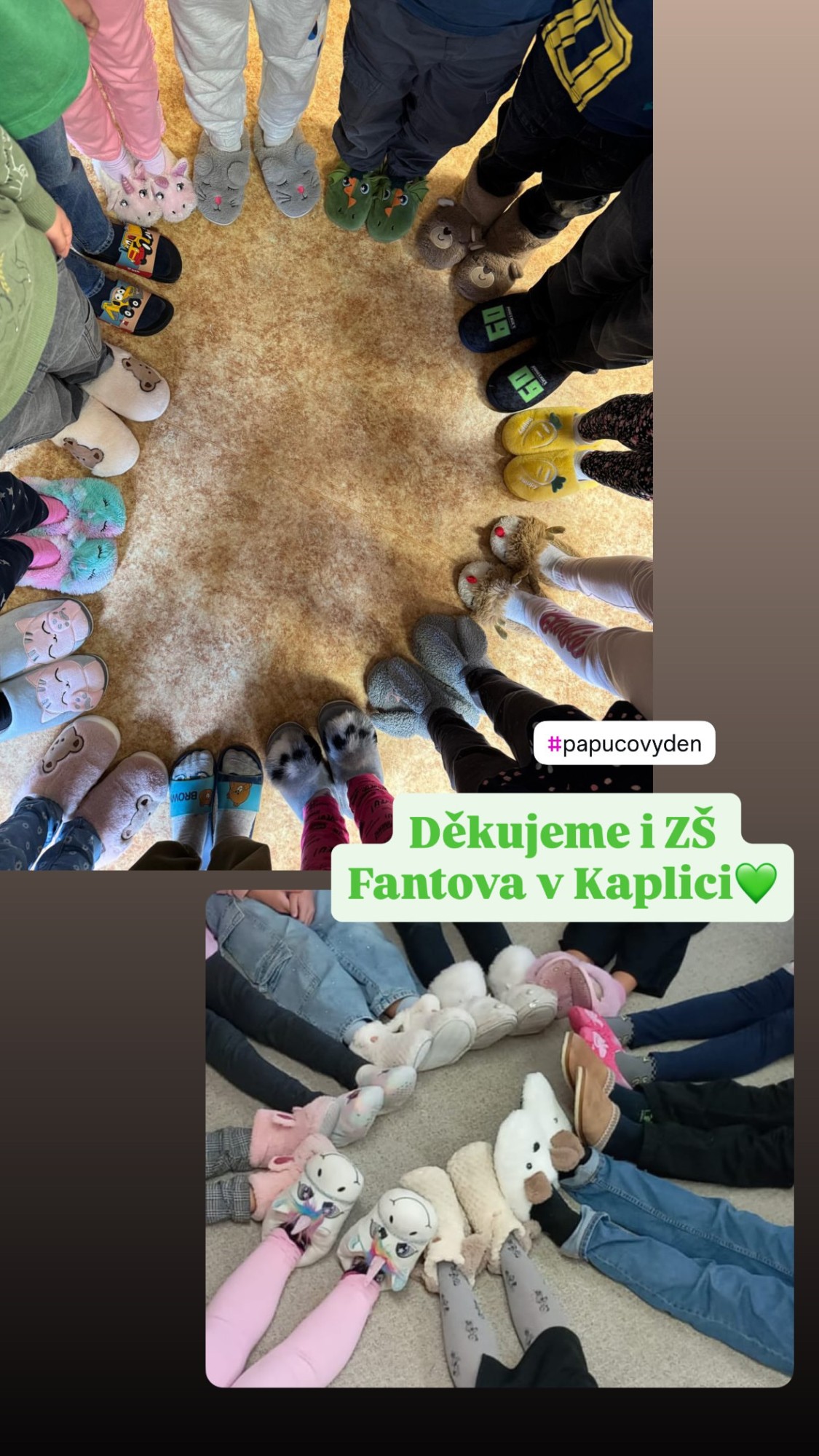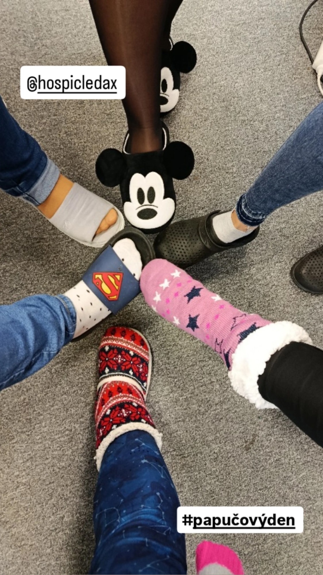 Středa 8. října se letos nesla ve znamení papučí. Na výraz podpory domácí hospicové péče nazul papuče a i prezidentský pár, ale také mnoho z vás, kteří v této myšlence vidíte smysl. Moc nás těší zapojení základních škol Omlenická a Fantova v Kaplici. Velmi si vážíme i zapojení všech firem a jednotlivců, kterým záleží na tom, aby se o potřebnosti a důležitosti domácích hospiců vědělo.