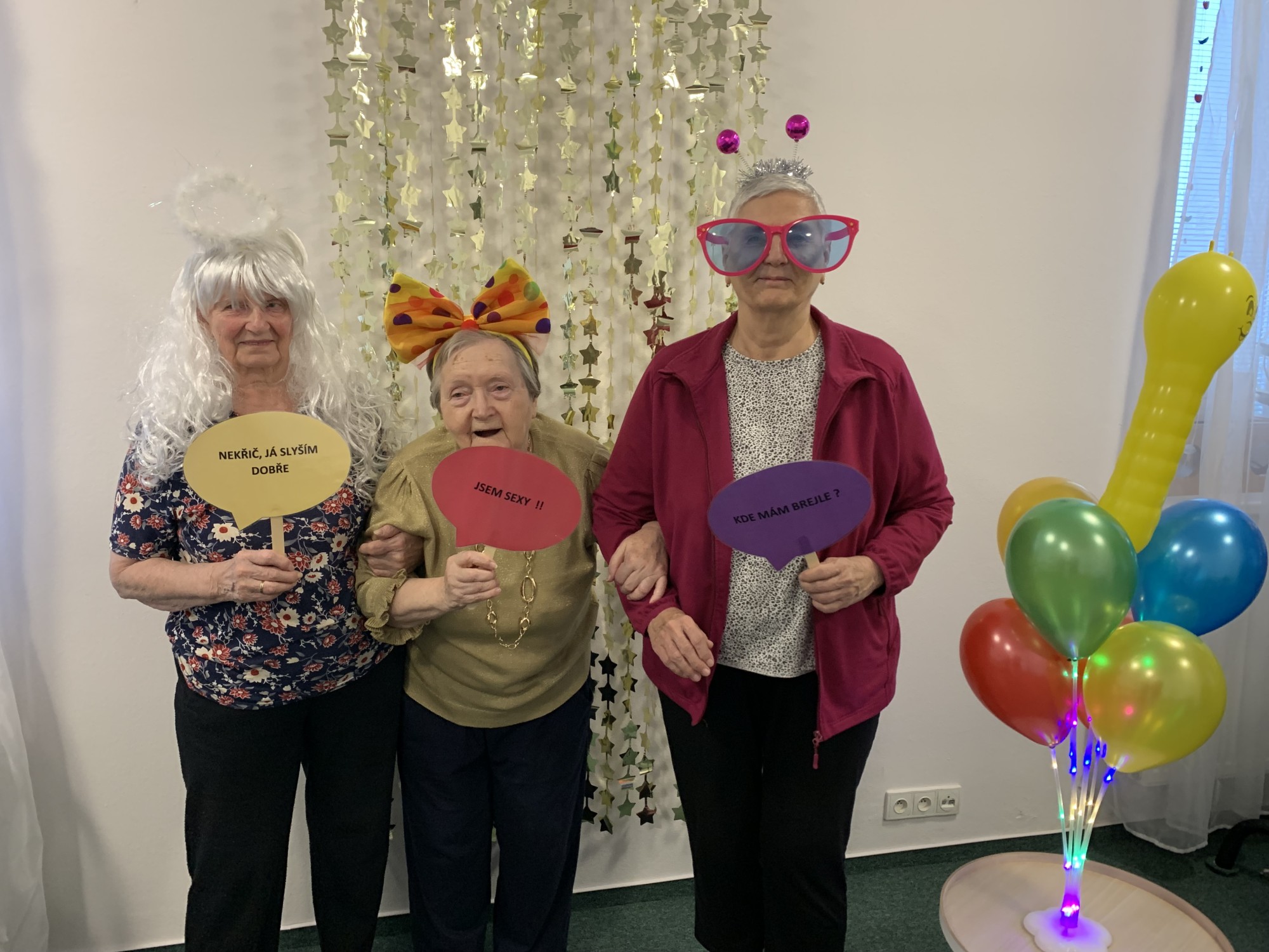 Silvestrovské žertování ve fotokoutku v Centru sociálních služeb Emausy