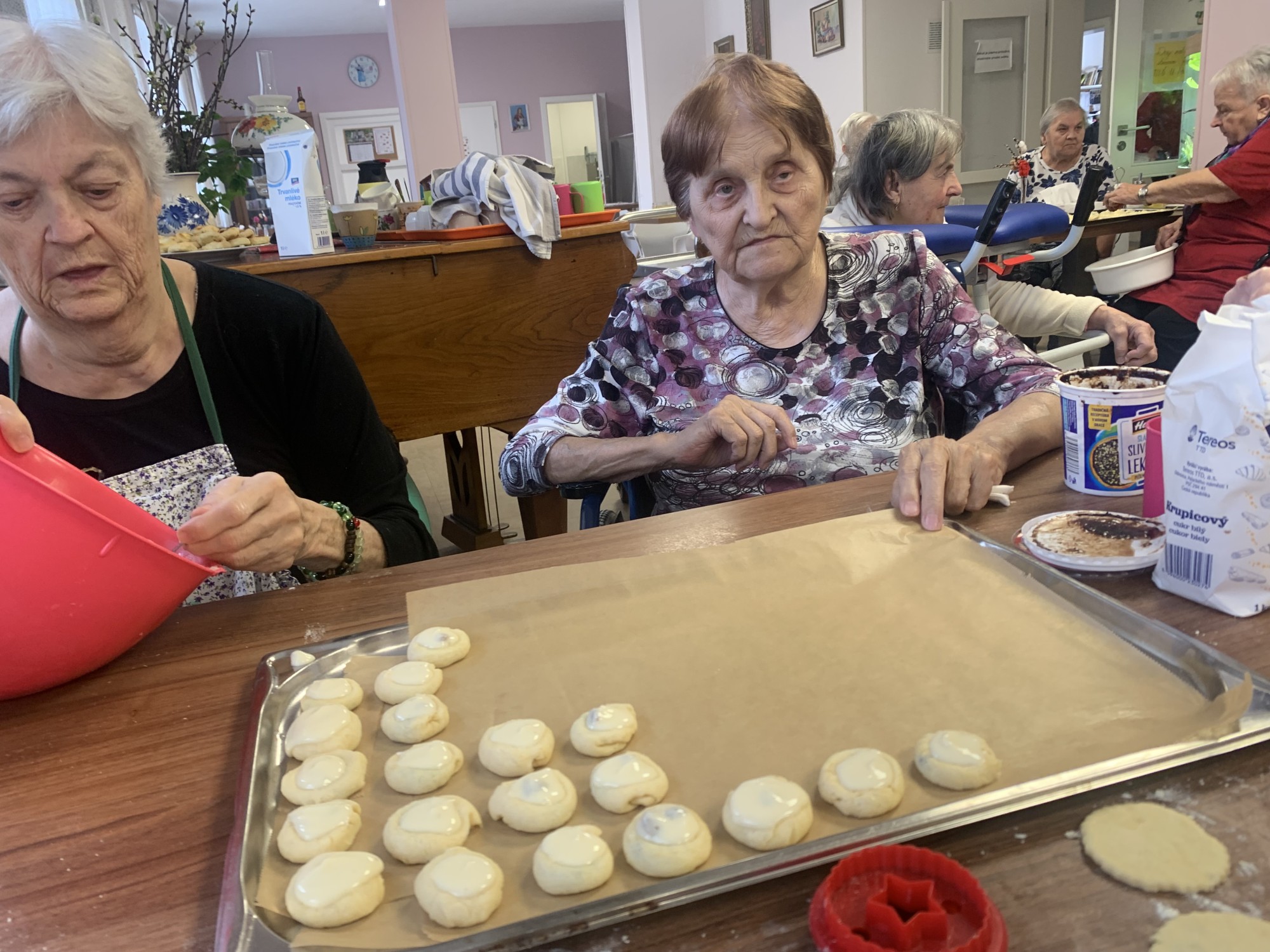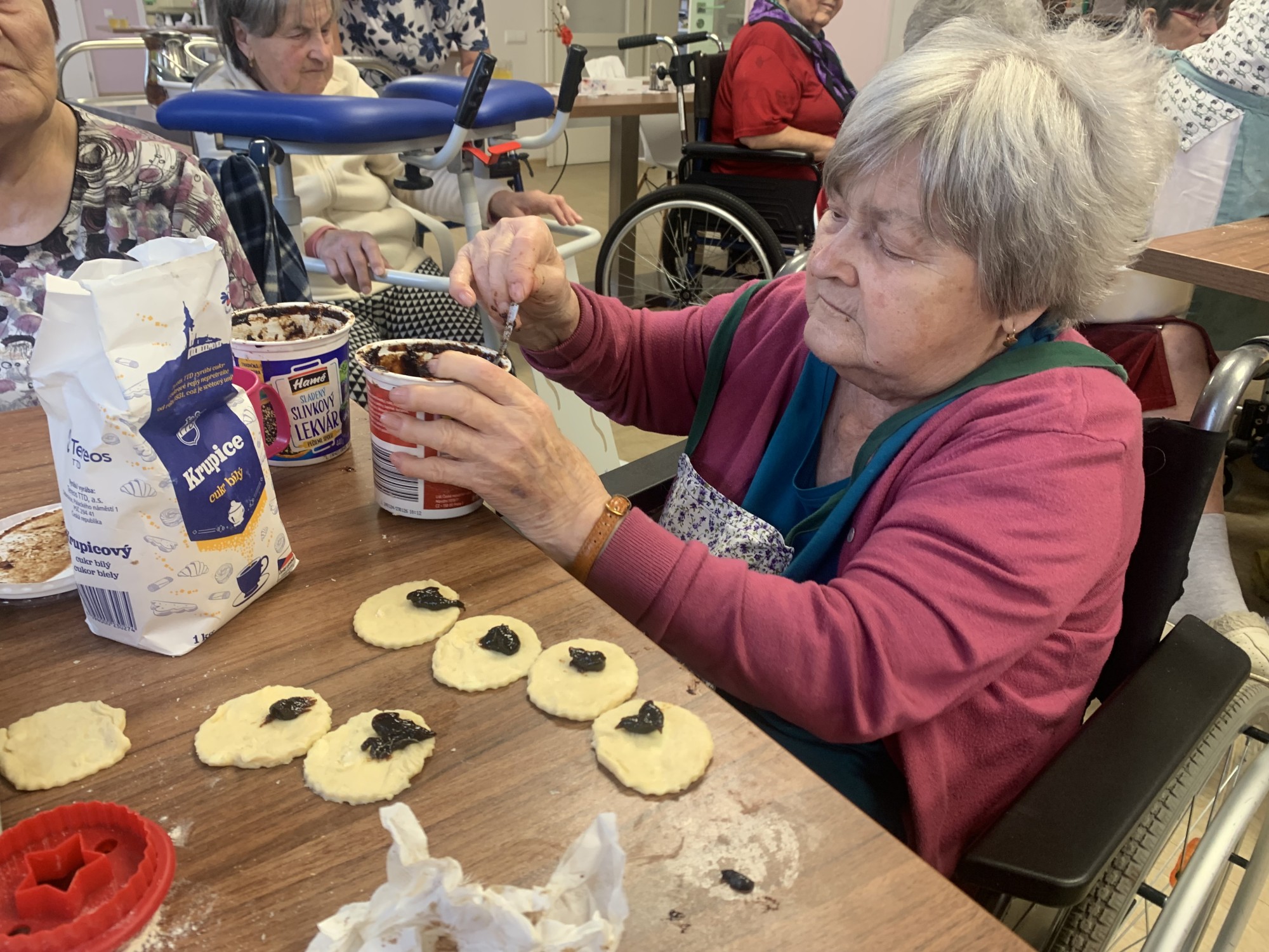Před samotnou oslavou jsme společně připravovali koláčky – protože co by to bylo za oslavu bez domácího pečiva? Vůně čerstvě upečených dobrot provoněla celé zařízení a naladila nás na slavnostní chvíle.