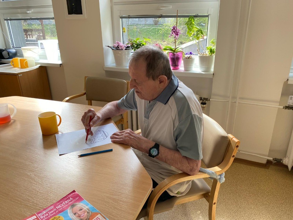 V 13. týdnu probíhaly přípravy na velikonoční svátky. V kulturní místnosti si klientky ozdobily větvičky velikonočními kraslicemi. S panem fyzioterapeutem jsme se společně rozcvičili, abychom měli skvělé výsledky v hodu na koš a v kuželkách.