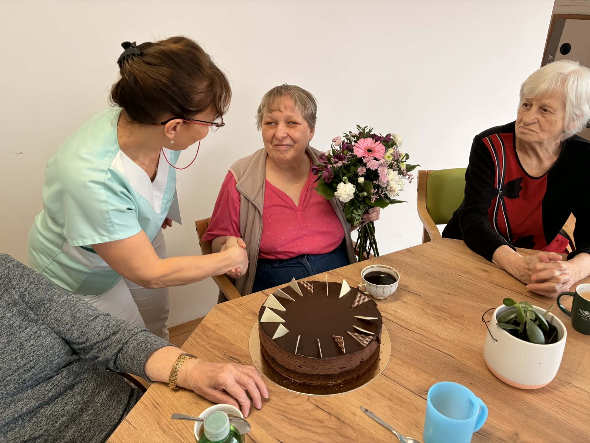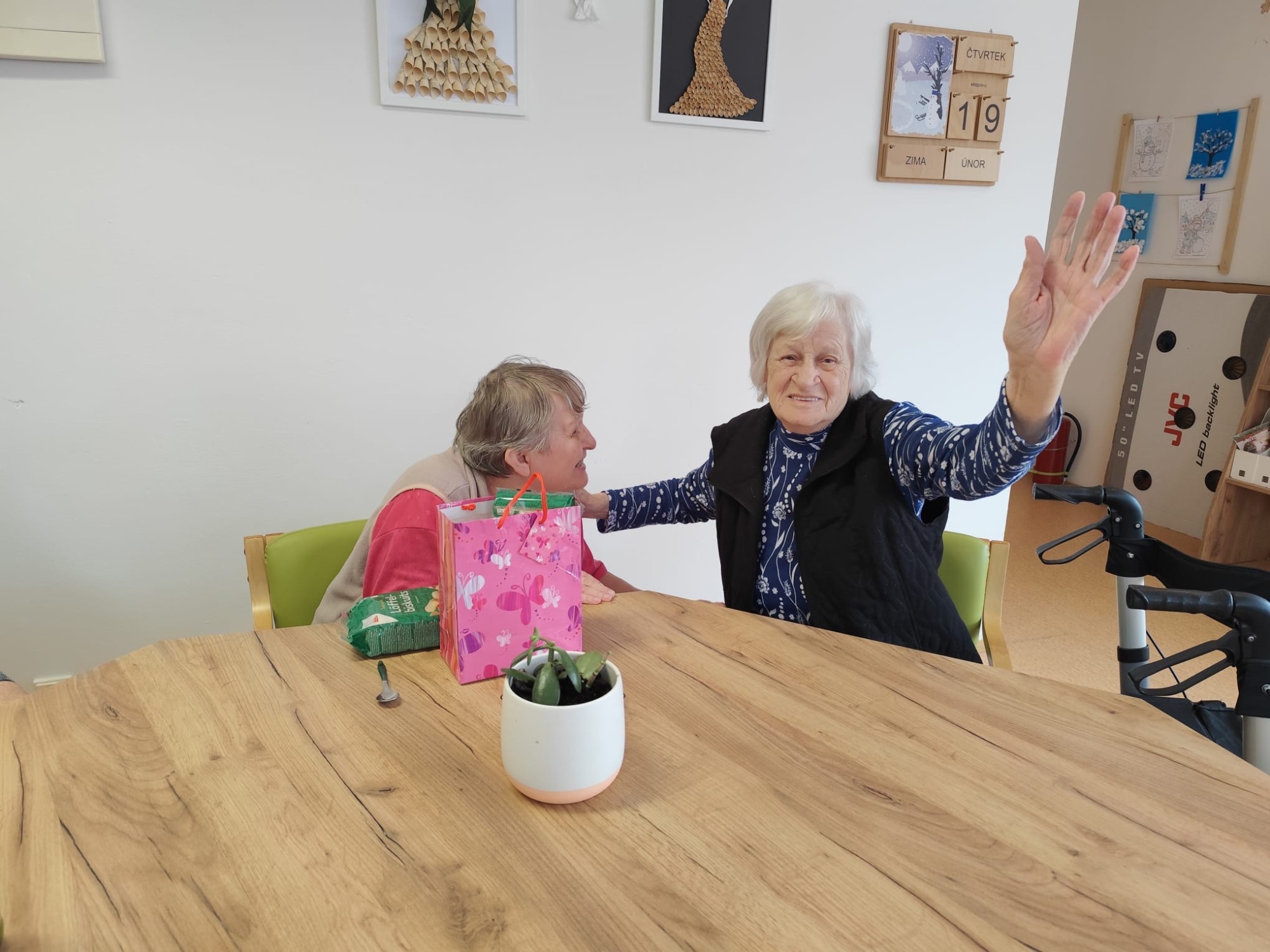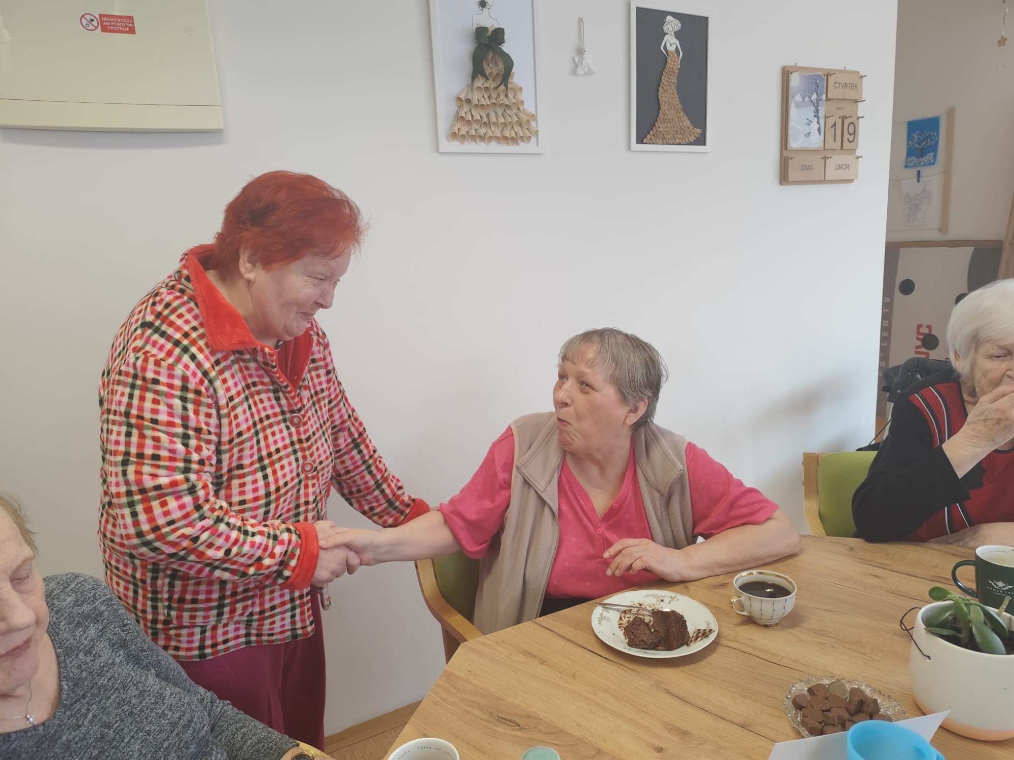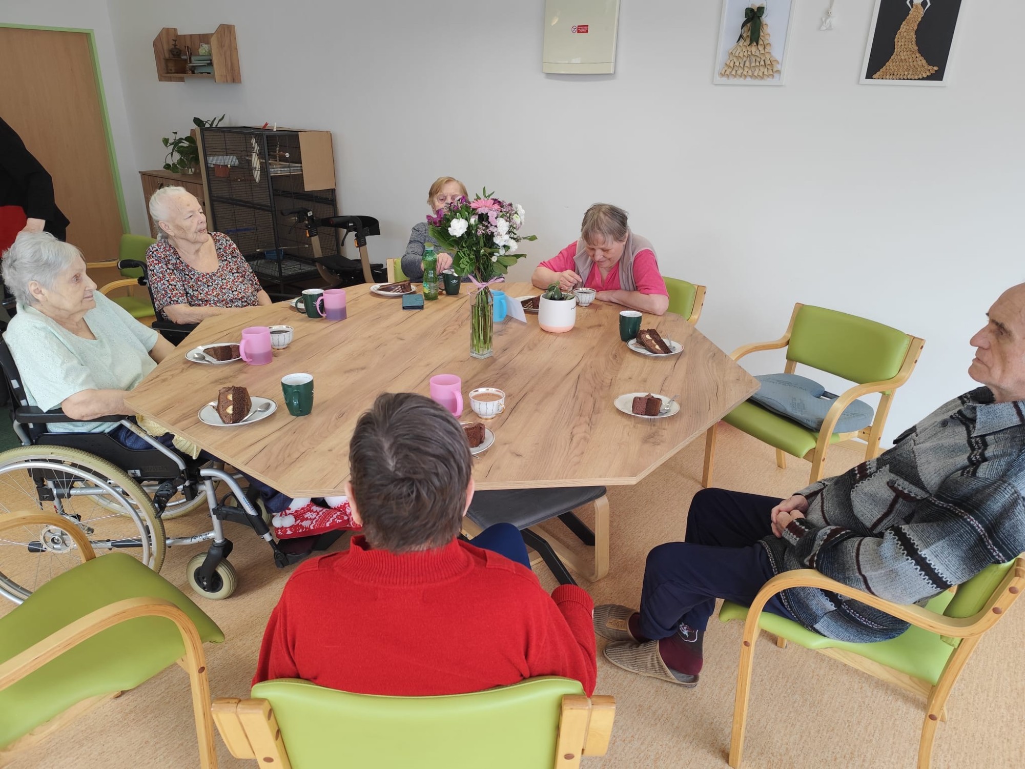 V kulturní místnosti jsme společně oslavili kulaté 60. narozeniny paní Moniky. Sešla se kolem ní milá společnost, nechyběla přání, úsměvy ani spokojenost, která z ní po celé dopoledne jen zářila. Bylo krásné vidět, jak si svůj slavnostní den mezi ostatními opravdu užívá. Na paní Elišku jsme také s radostí mysleli a srdečně jsme jí popřáli k nádherným 97. narozeninám.