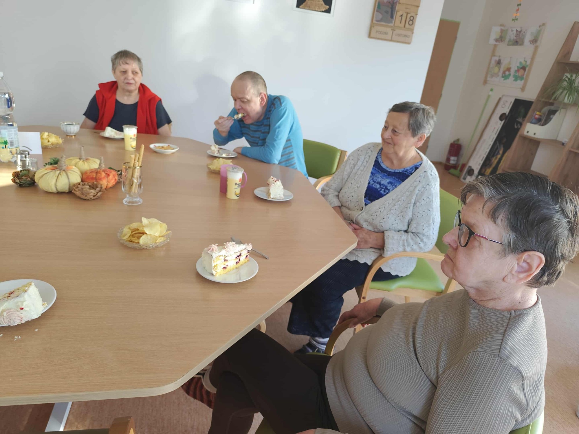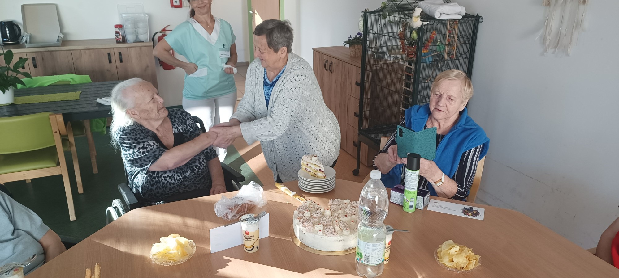 V první polovině listopadu jsme společně oslavili narozeniny paní Aničky a Bedřišky, které svůj den prožily v příjemné atmosféře kulturní místnosti. K oslavě se připojili i ostatní klienti, kteří přinesli gratulace, úsměvy a spoustu hezkých přání. Nechybělo malé občerstvení, dobrá nálada a přání hlavně pevného zdraví. Společná oslava se vydařila a obě oslavenkyně si užily svůj den v kruhu přátelského kolektivu.
