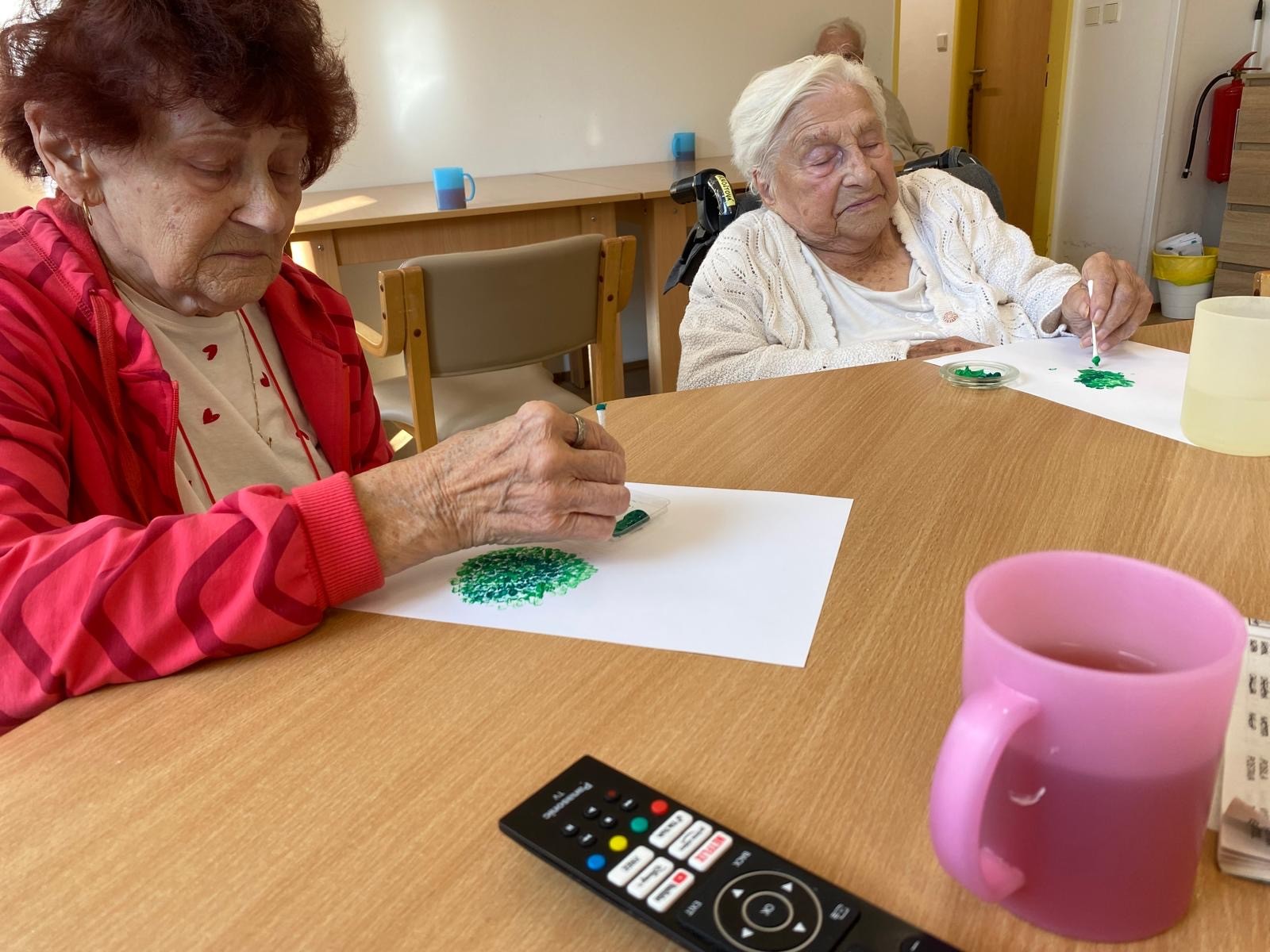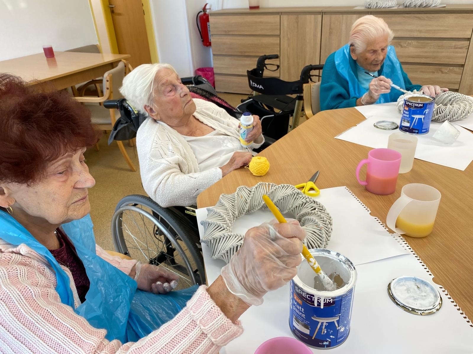 Každý den vznikají nové drobnosti, které zahřejí srdce, stejně jako radost z dobře odvedené práce.Mimo tvoření k nám docházejí také milé studentky z AHOL, které s našimi klienty také tráví čas. Povídají si, smějí se spolu a procvičují paměť i další kognitivní dovednosti.