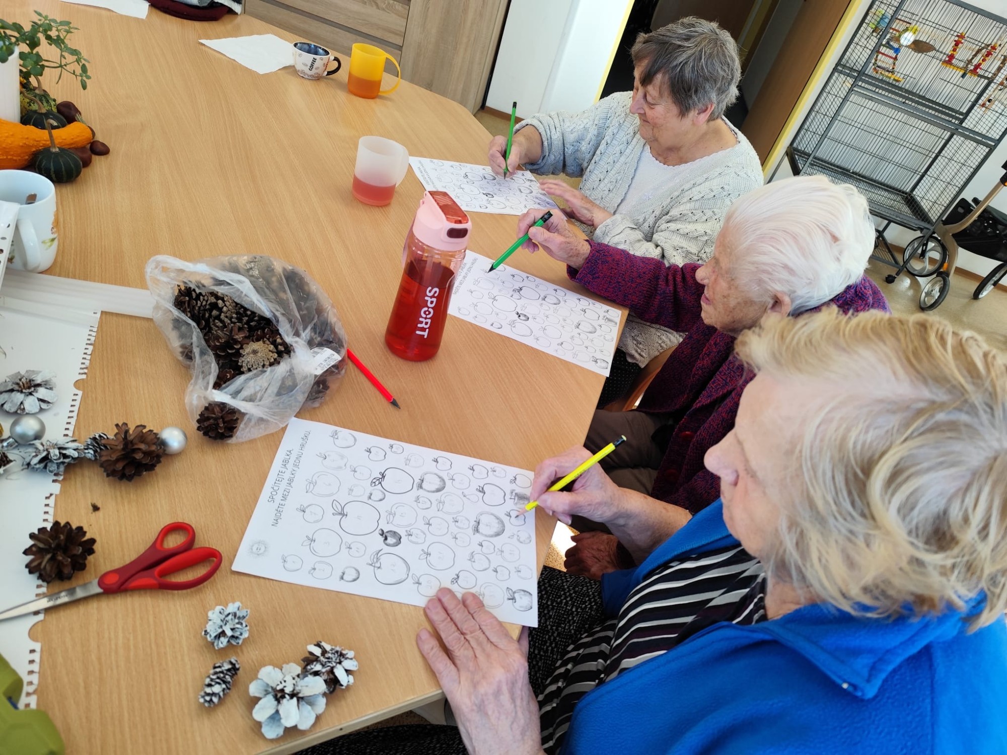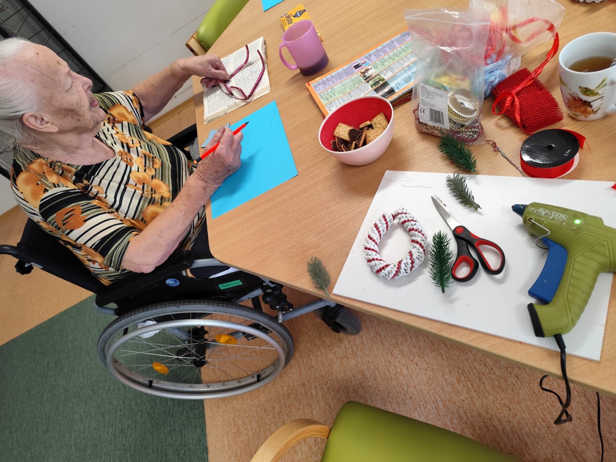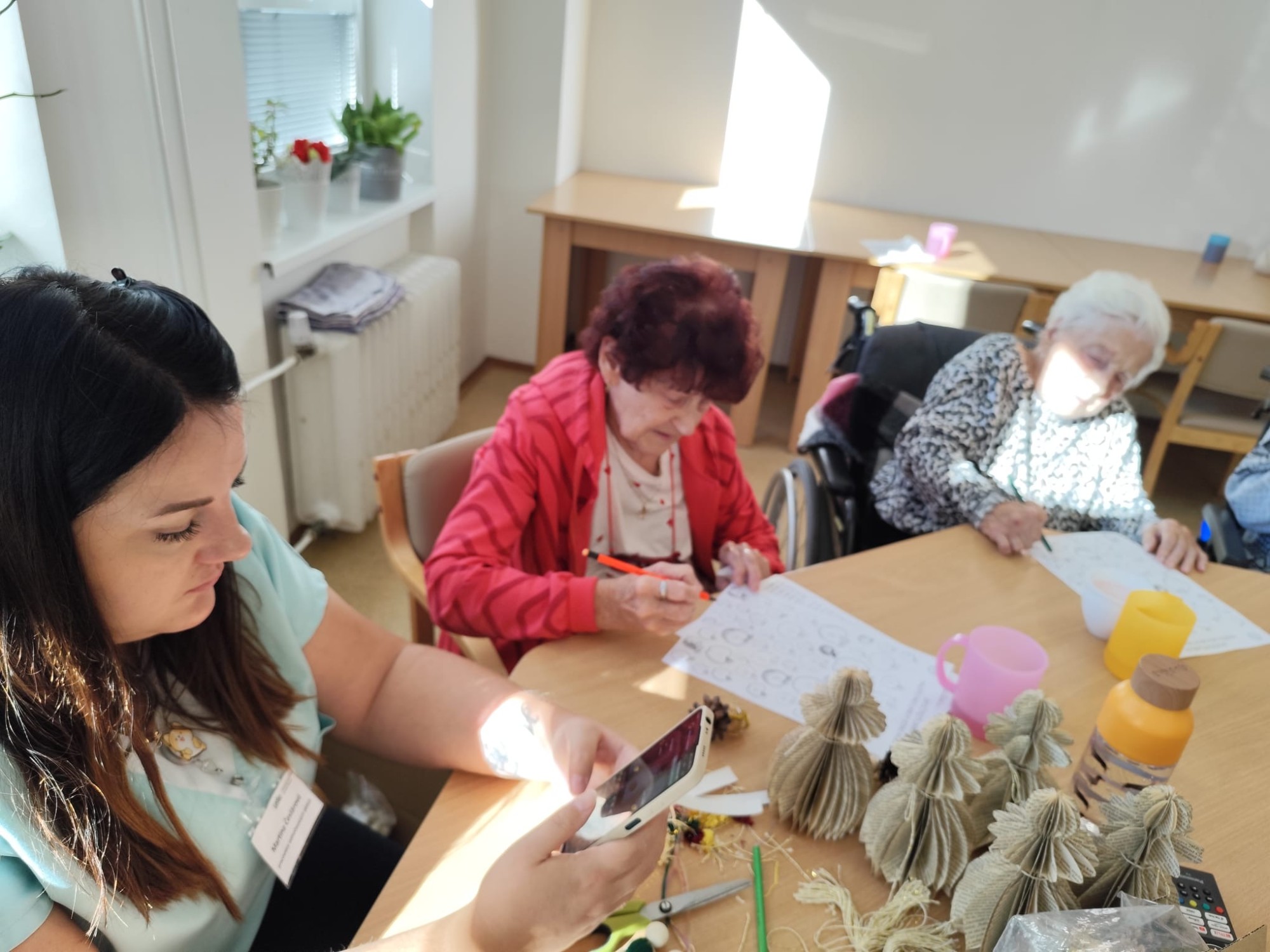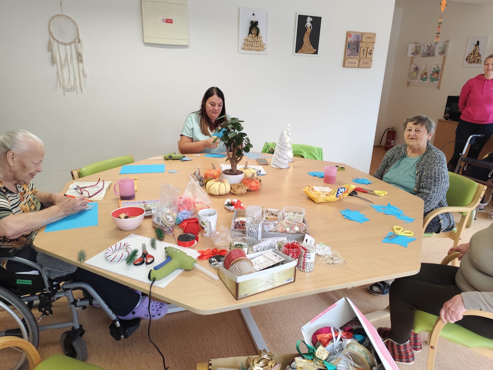Vánoce už pomalu klepou na dveře a naše šikovné ruce nezahálejí. Tvoříme, lepíme, zdobíme a přitom si hezky povídáme o starých časech i o tom, co nás těší dnes. Čas u práce plyne jako voda a všude je cítit dobrá nálada a radost z maličkostí. Naše dámy se pustily do vánočního tvoření a jde jim to jedna radost!