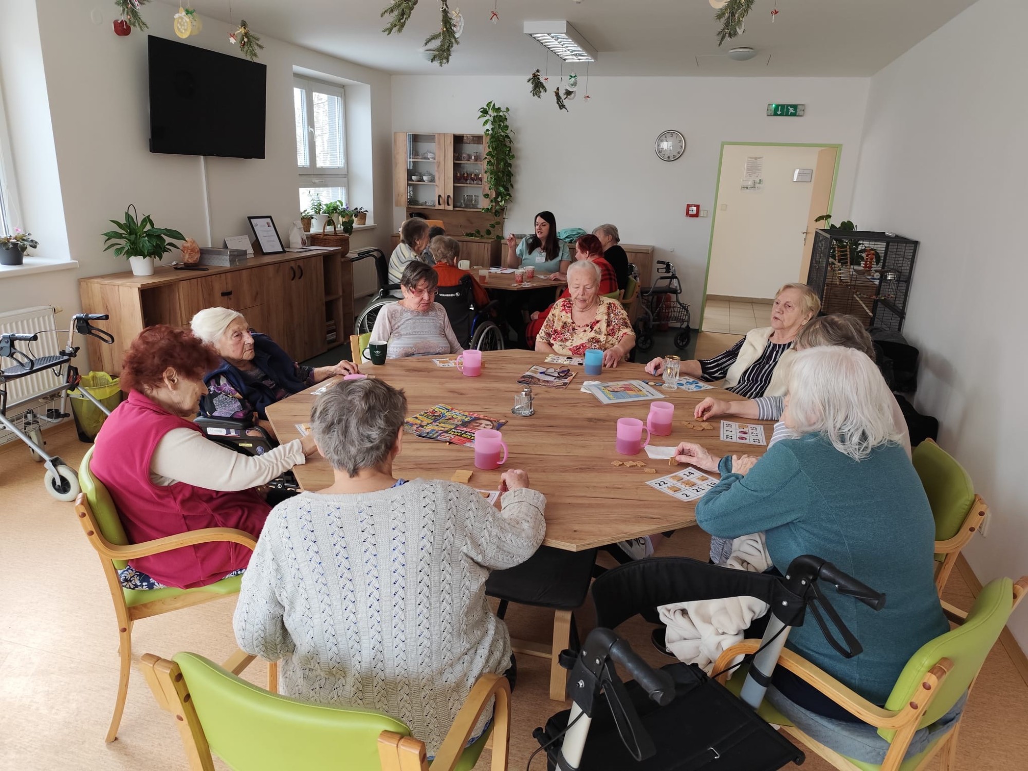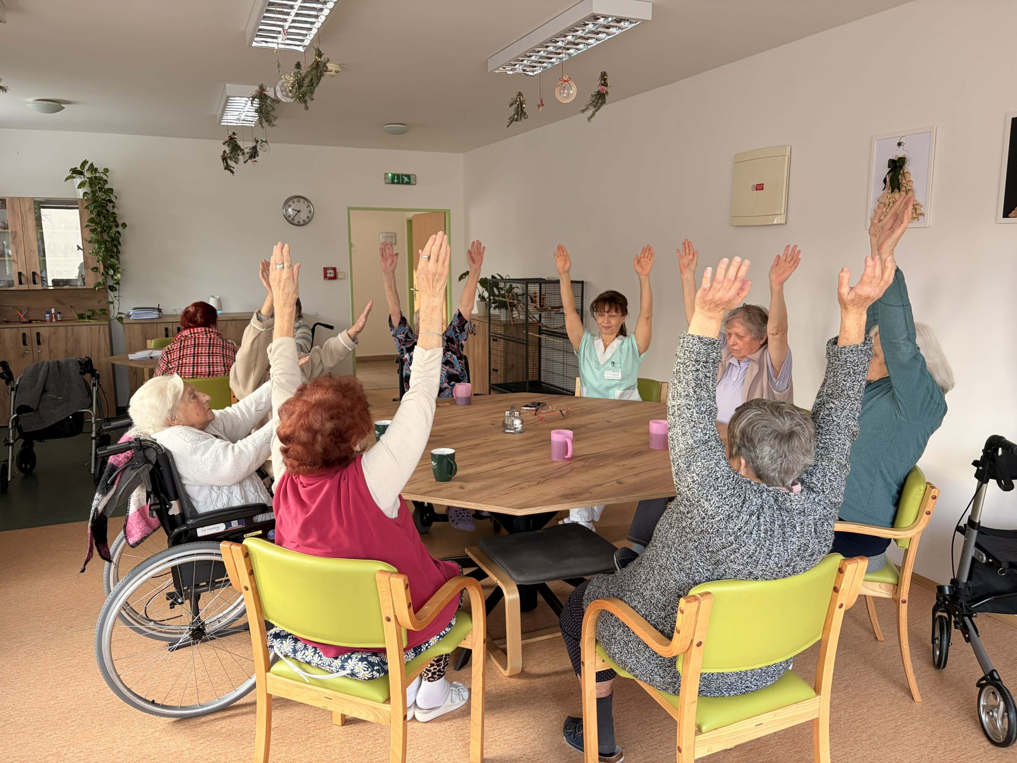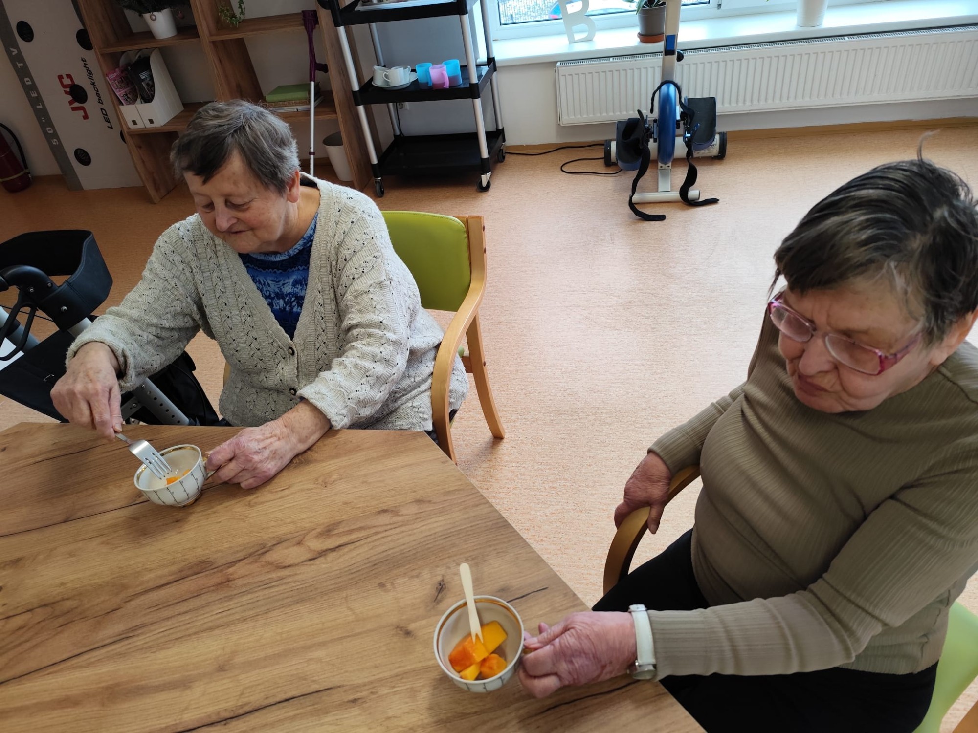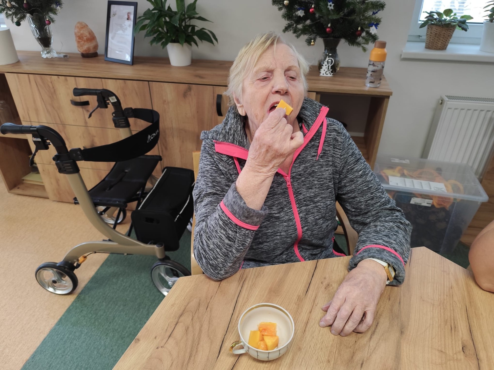 Na začátku ledna jsme se opět společně setkali v kulturní místnosti a užili si příjemné dopoledne plné pohody. Začali jsme jednoduchou rozcvičkou u stolu. Trochu jsme protáhli ruce, ramena i záda, aby se tělo hezky rozhýbalo a každý se cítil dobře. Pak přišlo na řadu povídání. Vzpomínali jsme na vánoční svátky, sdíleli si zážitky, tradice i to, jaké dárky kdo dostal nebo komu udělal radost. Nezapomněli jsme ani na trénink paměti. Procvičili jsme si kognitivní funkce zábavnou formou, každý podle svých možností. A jako sladká tečka na závěr? Pochutnali jsme si na vodním melounu a papáji, které nám připomněly trochu léta i uprostřed zimy.