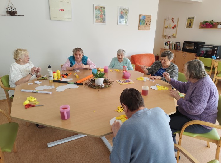 Blížící se Velikonoce pro nás znamenají veselé barevné tvoření. V kulturní místnosti to opět ožilo barvami, nůžkami a lepidlem. Vybarvovali jsme papírové kraslice, tvořili veselé zajíčky a roztomilá kuřátka. Nejenže si klienti Centra sociálních služeb Domus užili příjemný čas při tvoření, ale zároveň krásně vyzdobili prostor. Barevná výzdoba nyní zdobí i světla v kulturní místnosti a všem dělá radost.