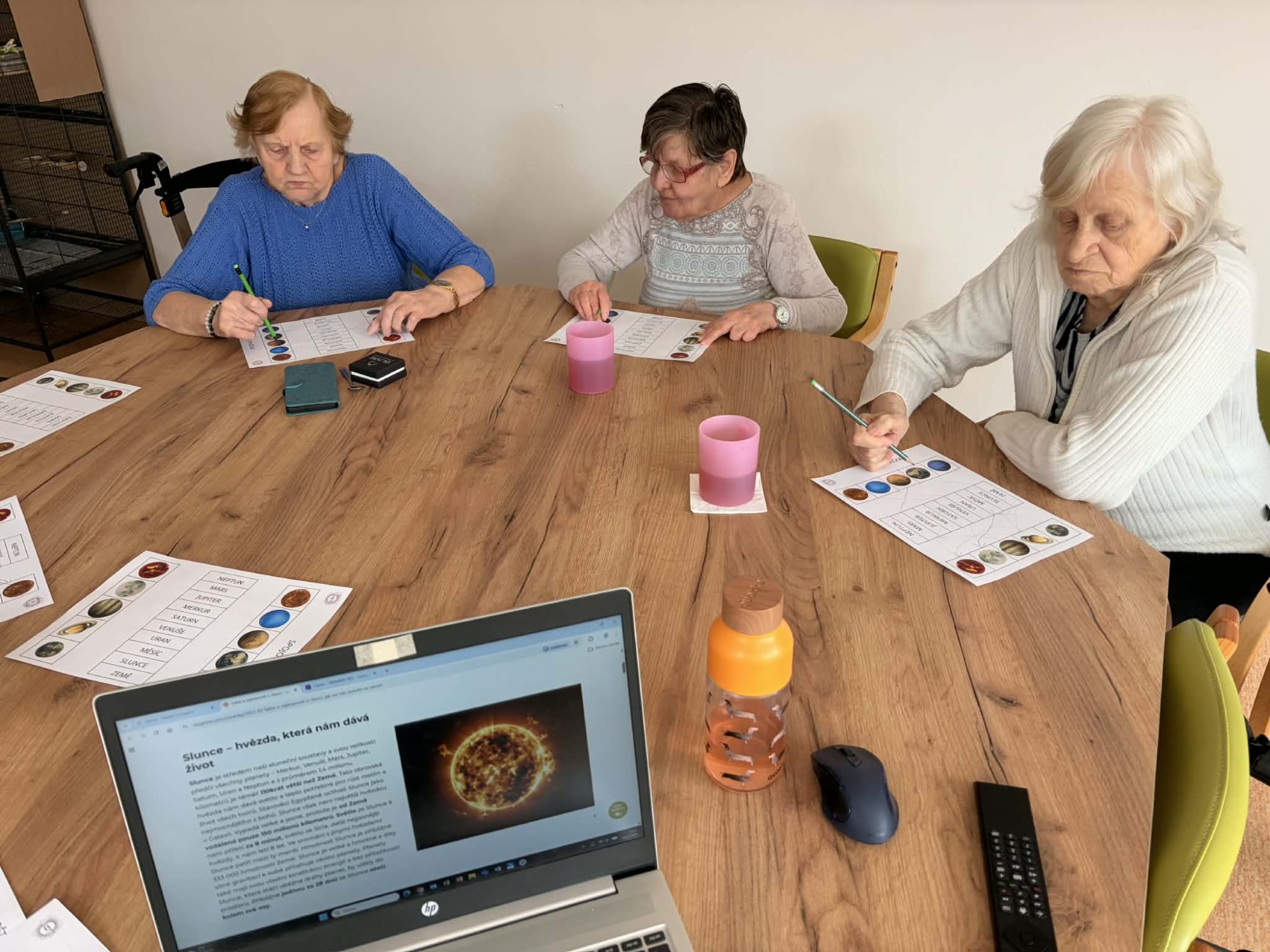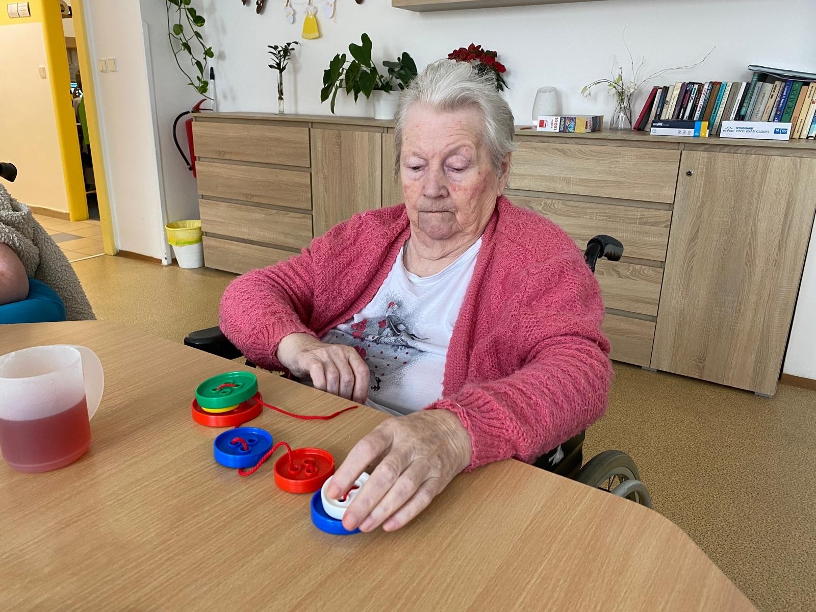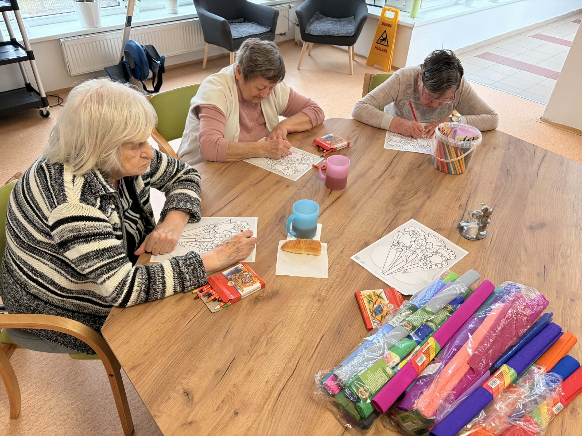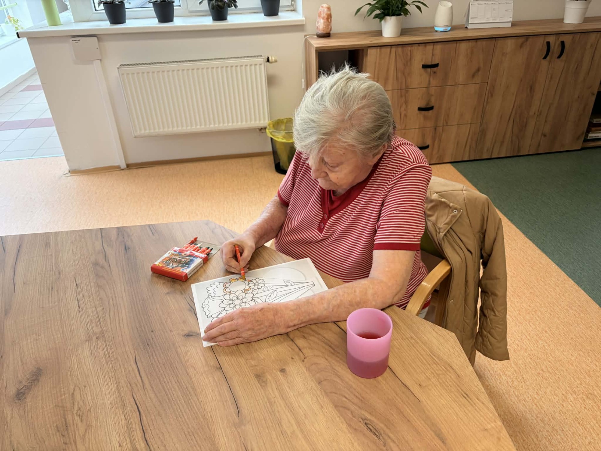 V kulturní místnosti to u nás dopoledne žije. Jakmile se sejdeme, stoly se promění v malé tvořivé dílny a pod rukama začnou vznikat barevné obrázky, dekorace i drobnosti pro radost.