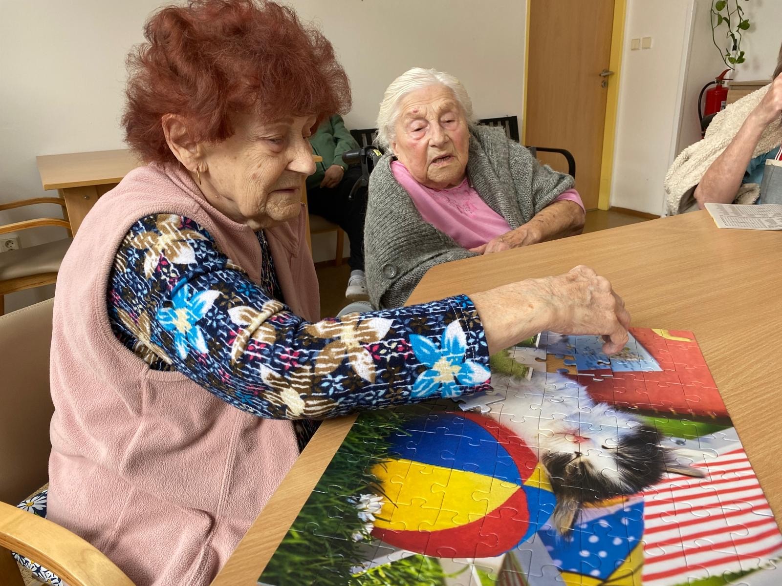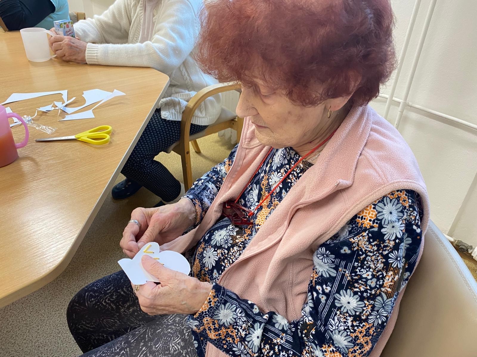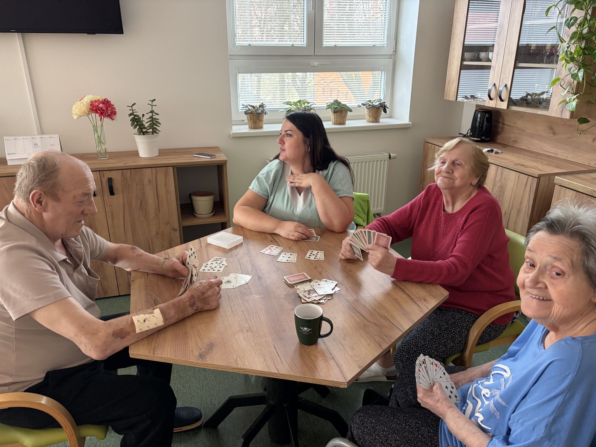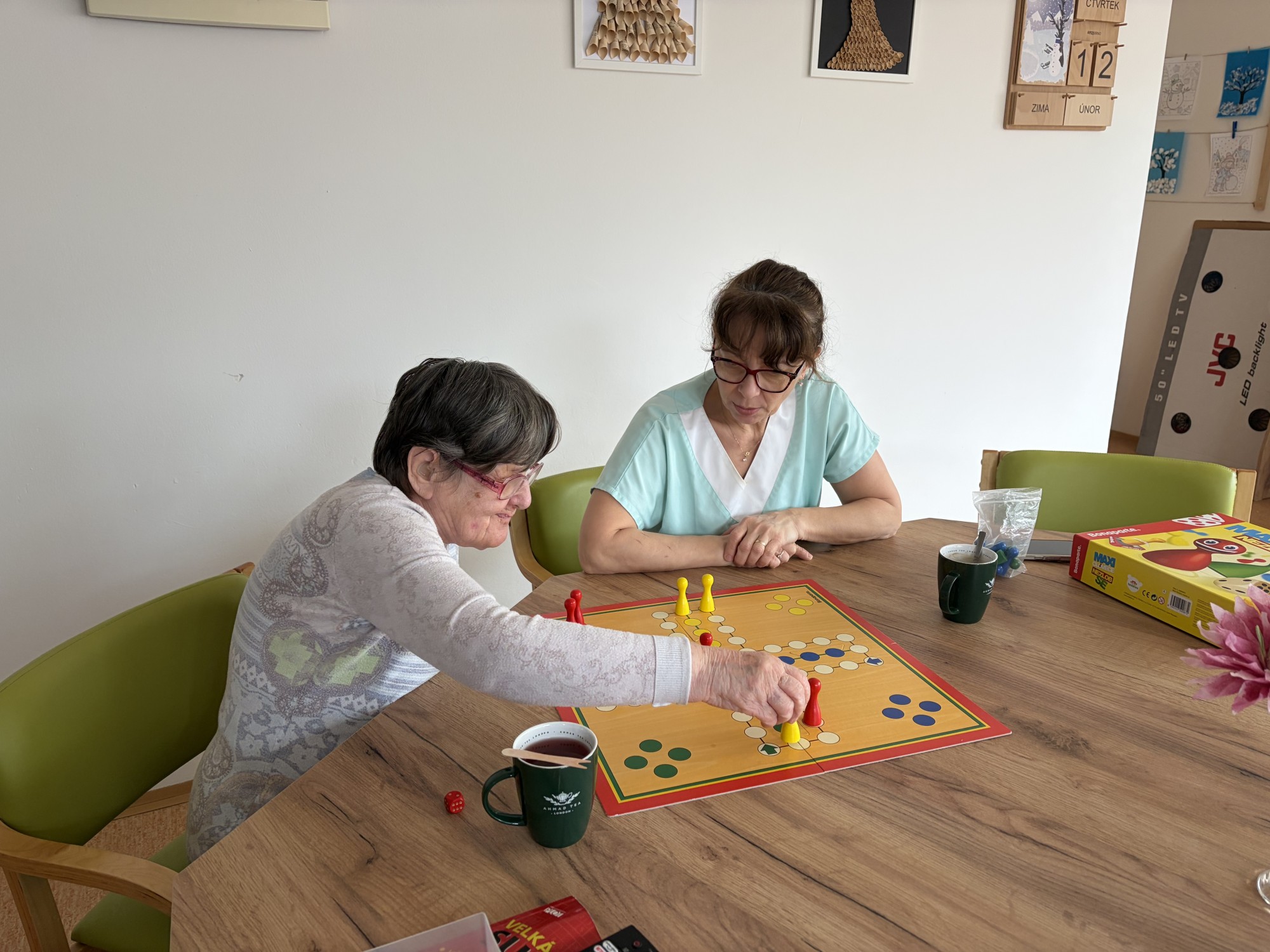 V kulturní místnosti to u nás dopoledne žije. Jakmile se sejdeme, stoly se promění v malé tvořivé dílny a pod rukama začnou vznikat barevné obrázky, dekorace i drobnosti pro radost.