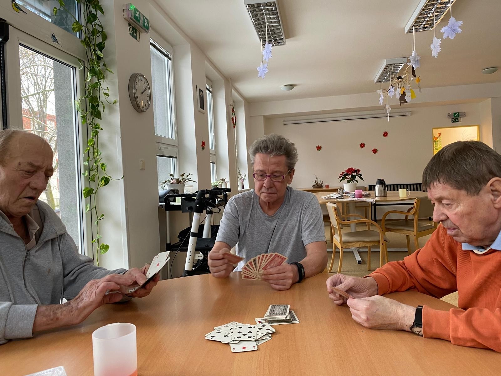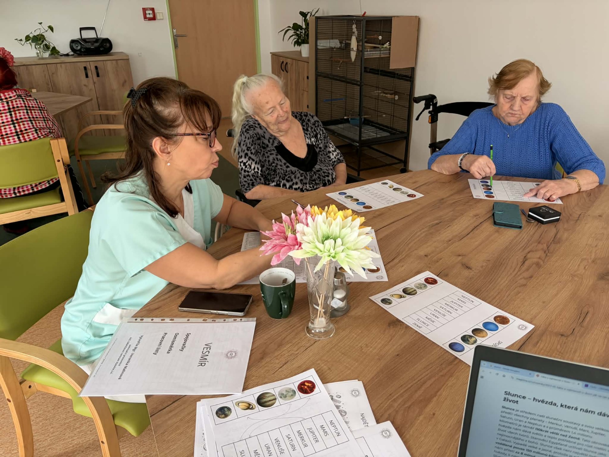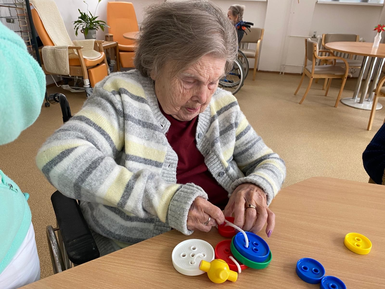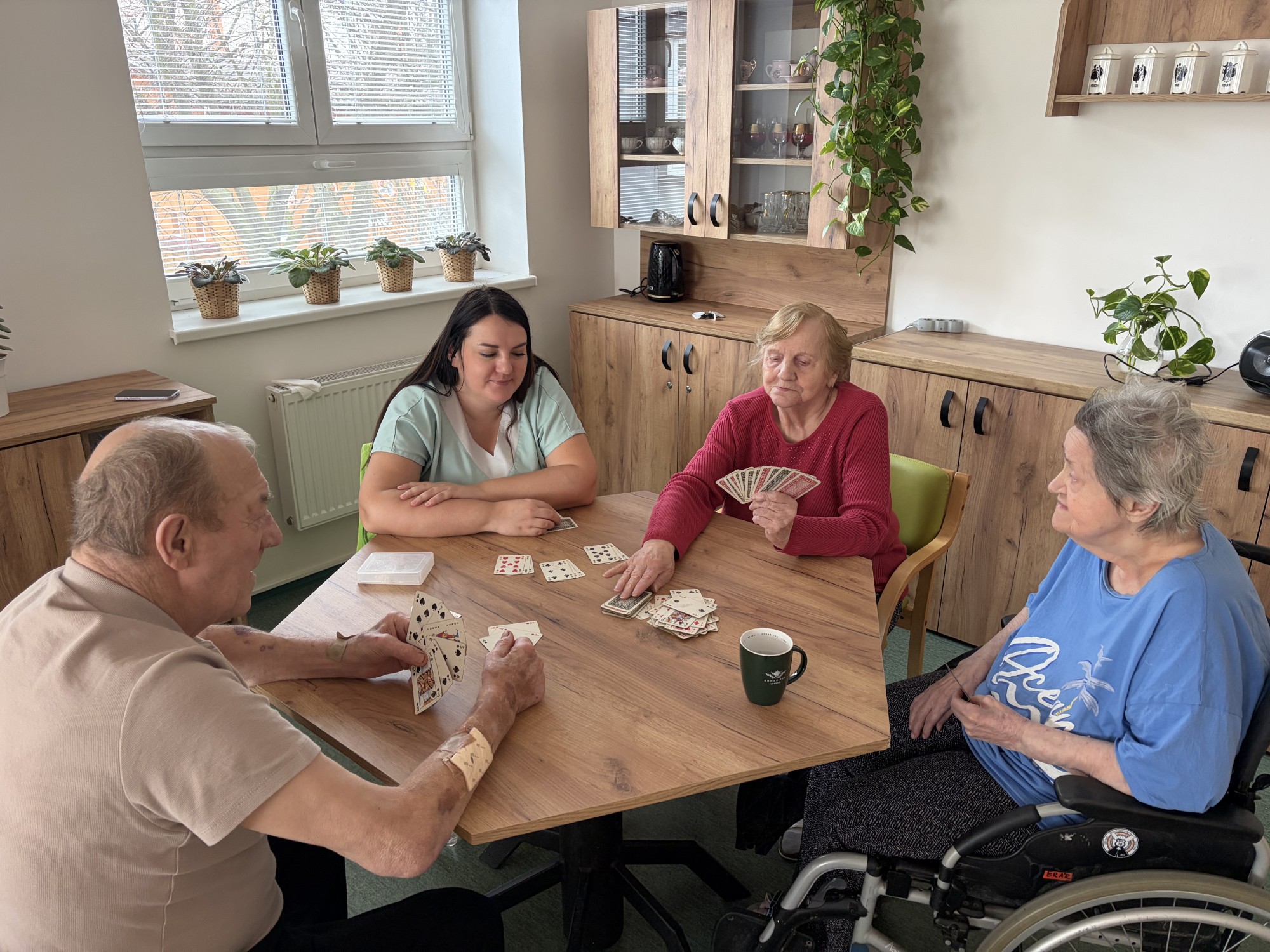 V kulturní místnosti to u nás dopoledne žije. Jakmile se sejdeme, stoly se promění v malé tvořivé dílny a pod rukama začnou vznikat barevné obrázky, dekorace i drobnosti pro radost.