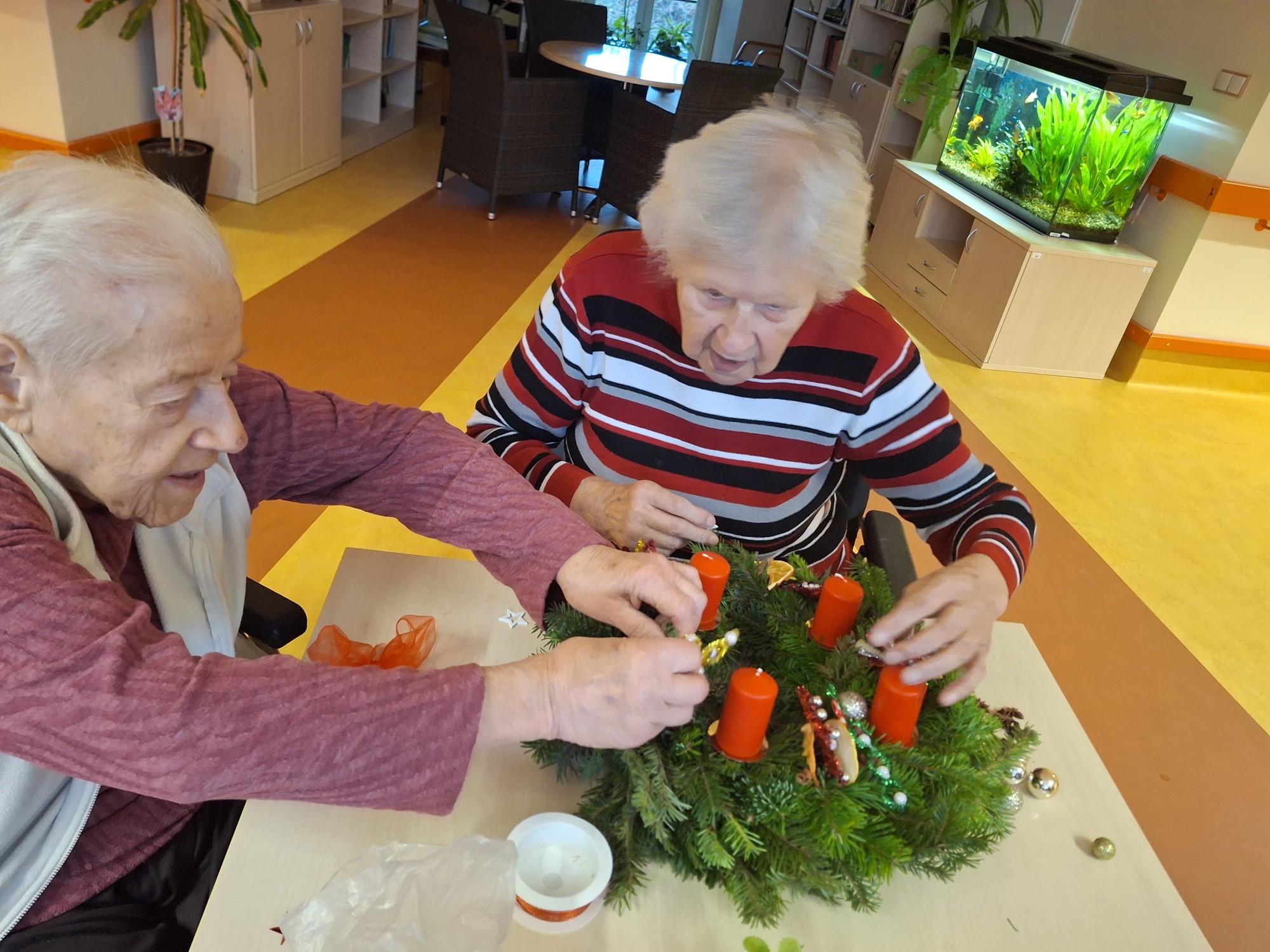 V domově  jsme společně s klienty vytvořili krásné adventní věnce. Při zdobení nás provázela vůně chvojí, zpěv koled a dobrá nálada. Společně jsme tak vykročili vstříc nadcházejícímu adventu.