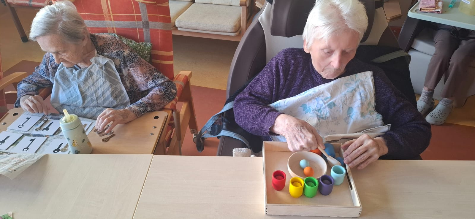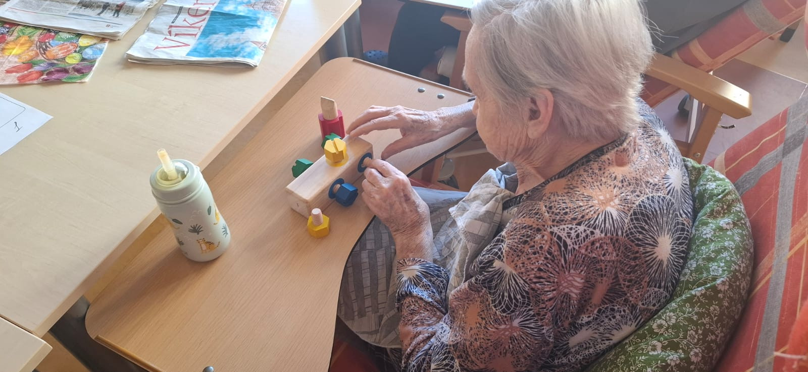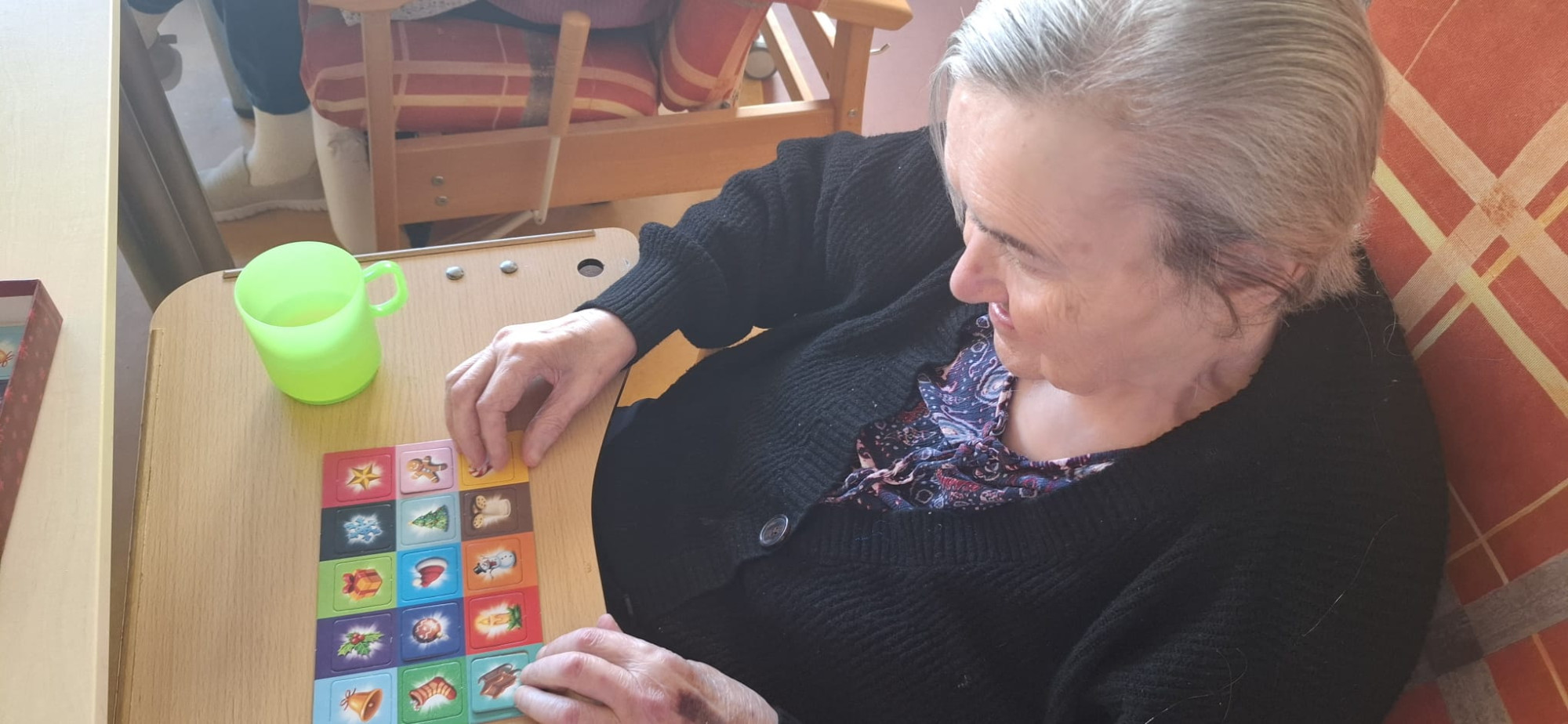 Deskových i jiných her máme v aktivitách plnou skříň, a tak opravdu je z čeho vybírat. Naše hry zaměřujeme na klienty a jejich schopnosti. Potrénujeme u nich paměť, zavzpomínáme nebo posílíme motoriku. Vše s ohledem na schopnosti a přání klientů.