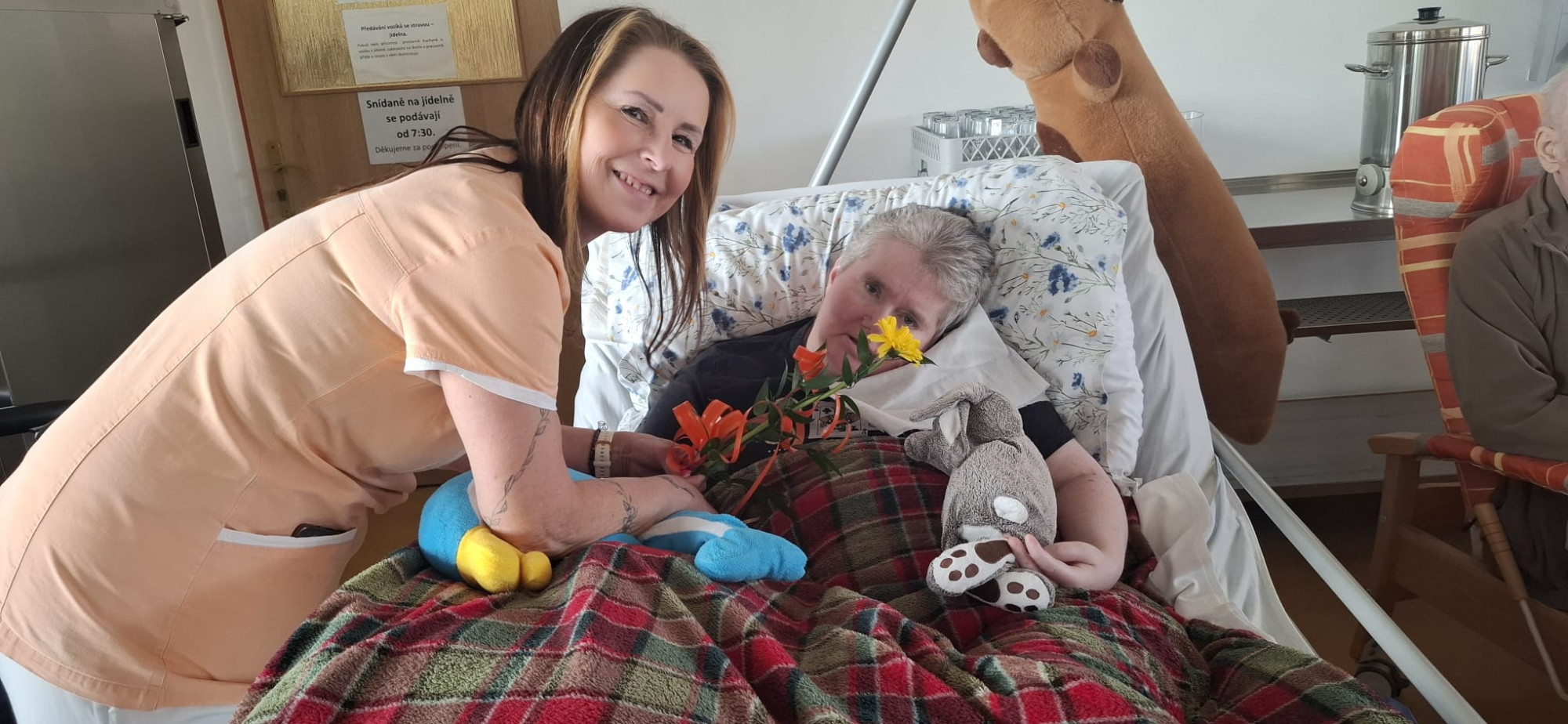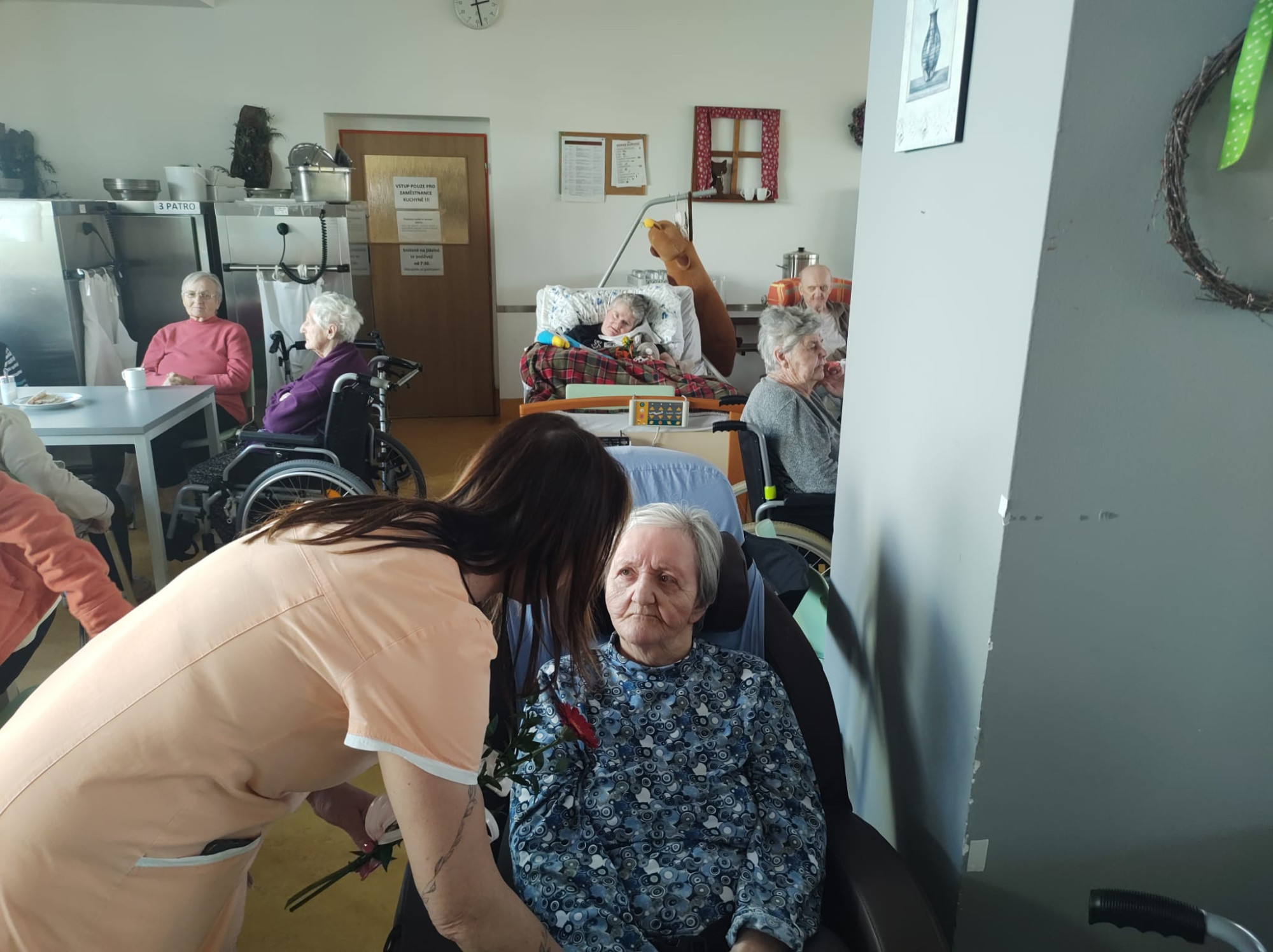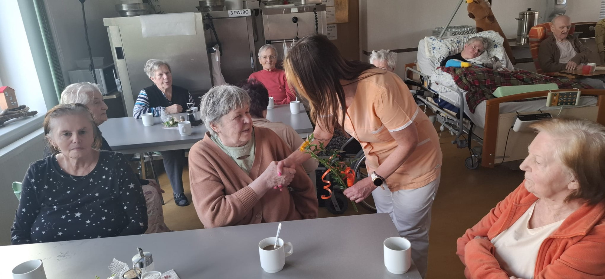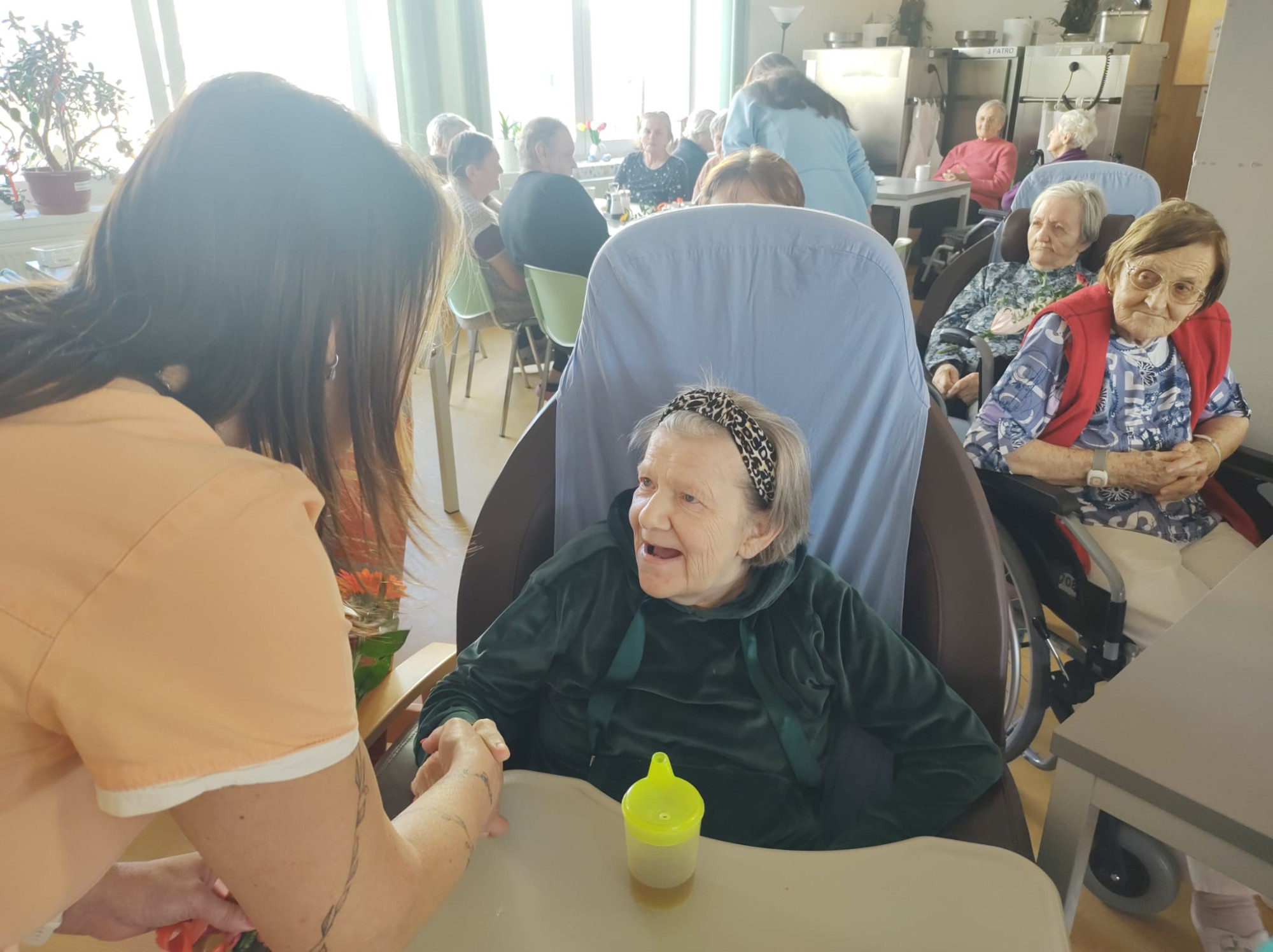 V dubnu jsme jako každý měsíc oslavili narozeniny všech klientů, kteří se narodili právě v tomto měsíci. Tentokrát slavilo celkem devět oslavenkyň a oslavenců. Každý z nich obdržel květinu a společně jsme jim popřáli vše nejlepší. Nejstarší oslavenkyně oslavila úctyhodných 93 let. Pro všechny klienty bylo připraveno malé pohoštění v podobě chlebíčku a kávy. Příjemnou atmosféru odpoledne navíc doplnily známé písně v podání harmonikáře pana Trnky. Celé setkání jsme si velmi užili a strávili společně krásné odpoledne.