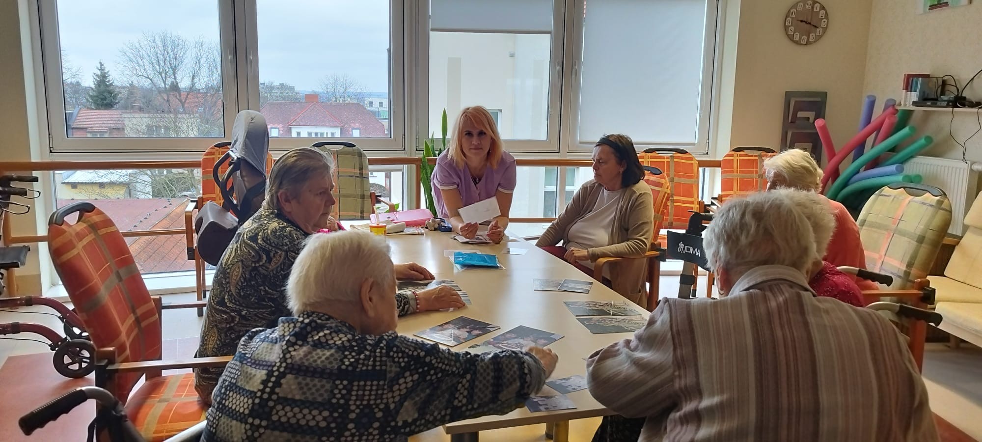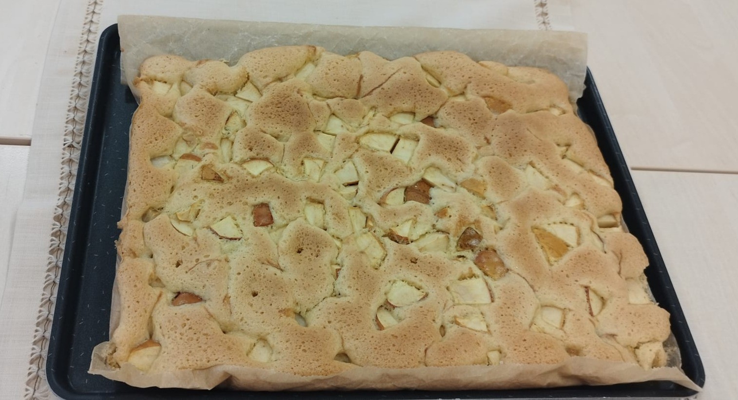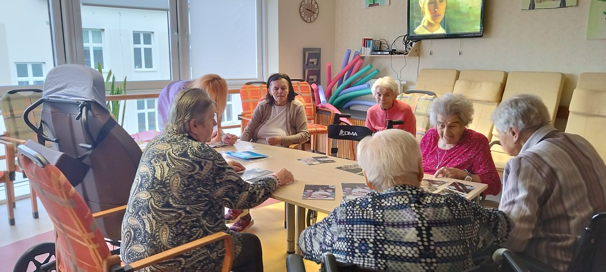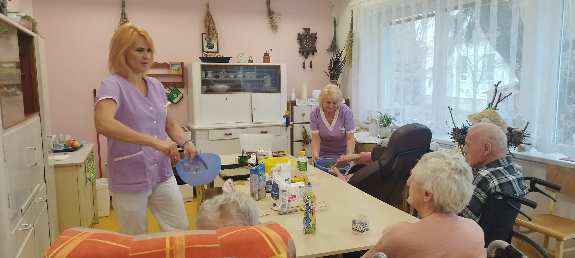 Pečení perníku a buchty s kousky ovoce proběhlo ve vzpomínkové místnosti, pustili jsme si dechovku a dali se do práce. Někdo se aktivně zapojil, někdo si prozpěvoval a ostatní radili, kolik čeho do mísy přidat. Po patře se za chvíli linula moc pěkná vůně a upečené dezerty si dáme na čtvrteční filmové kavárně.