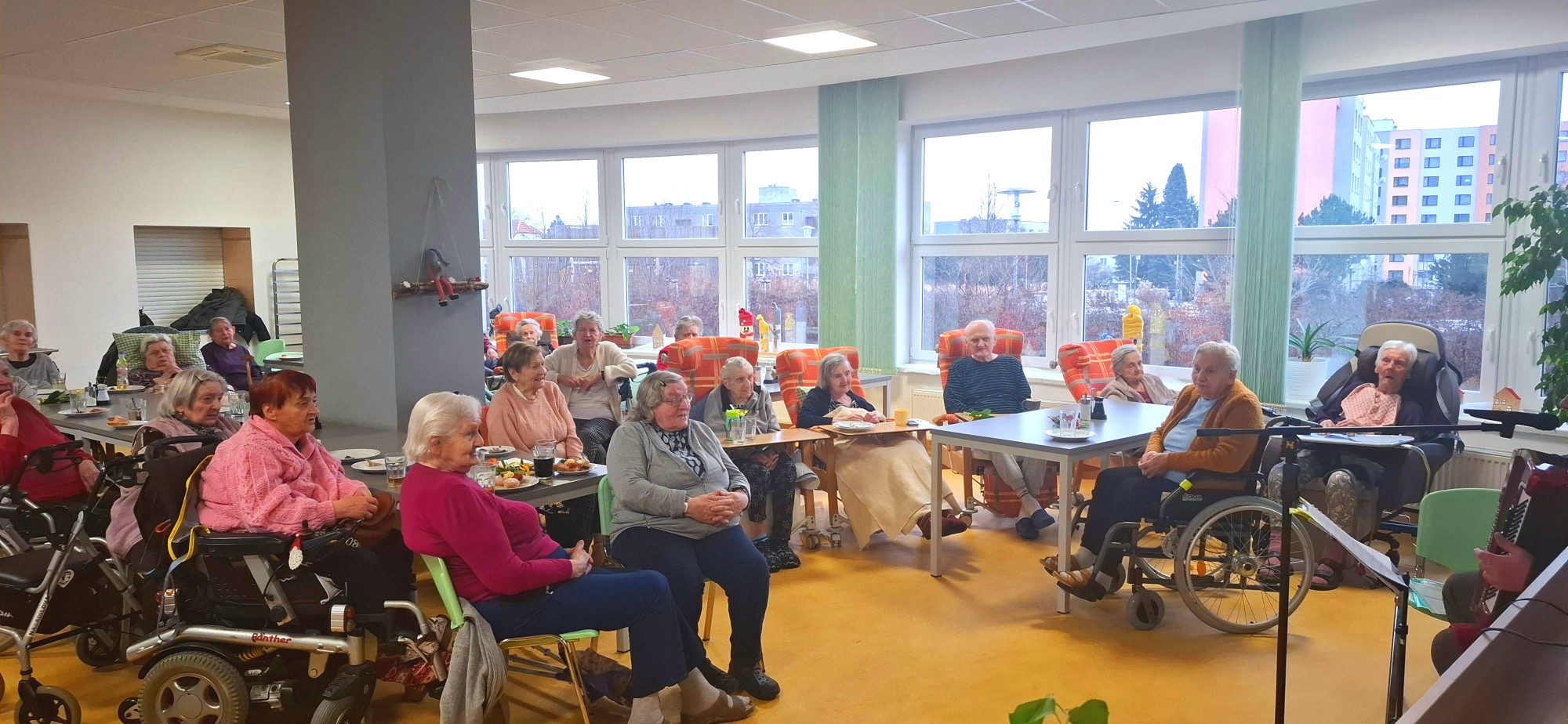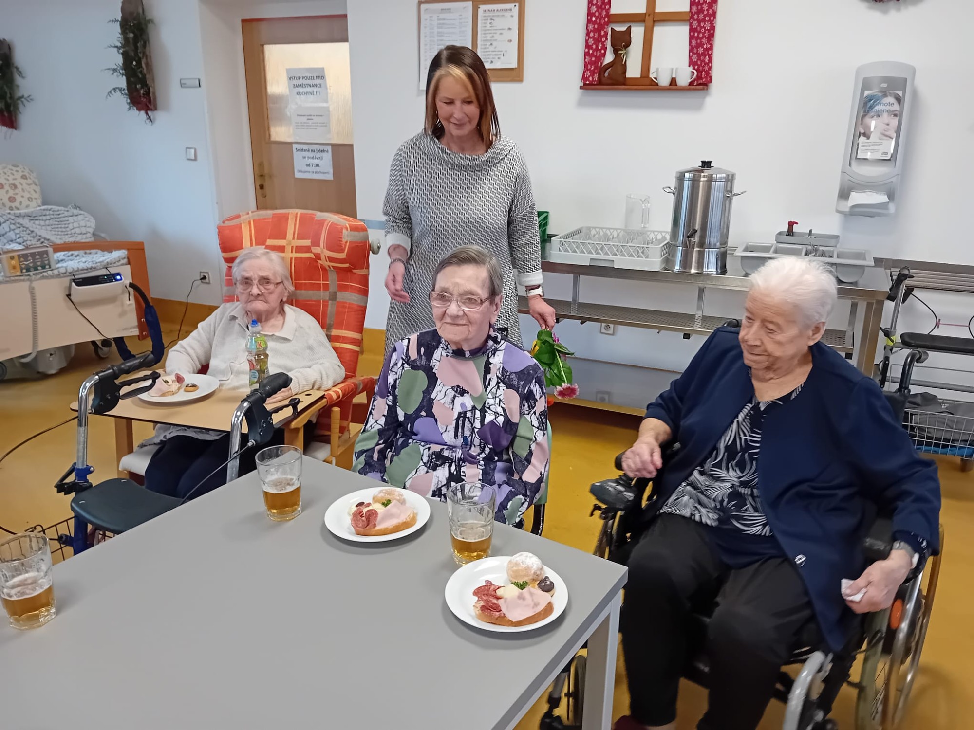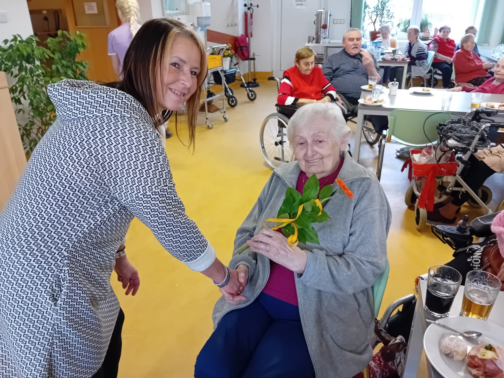Narozeninovou květinu tentokrát převzalo hned deset oslavenců a o slavnostní atmosféru nebyla nouze. Nechyběl tradiční chlebíček ani oblíbené písničky v podání nám dobře známého harmonikáře pana Trnky.