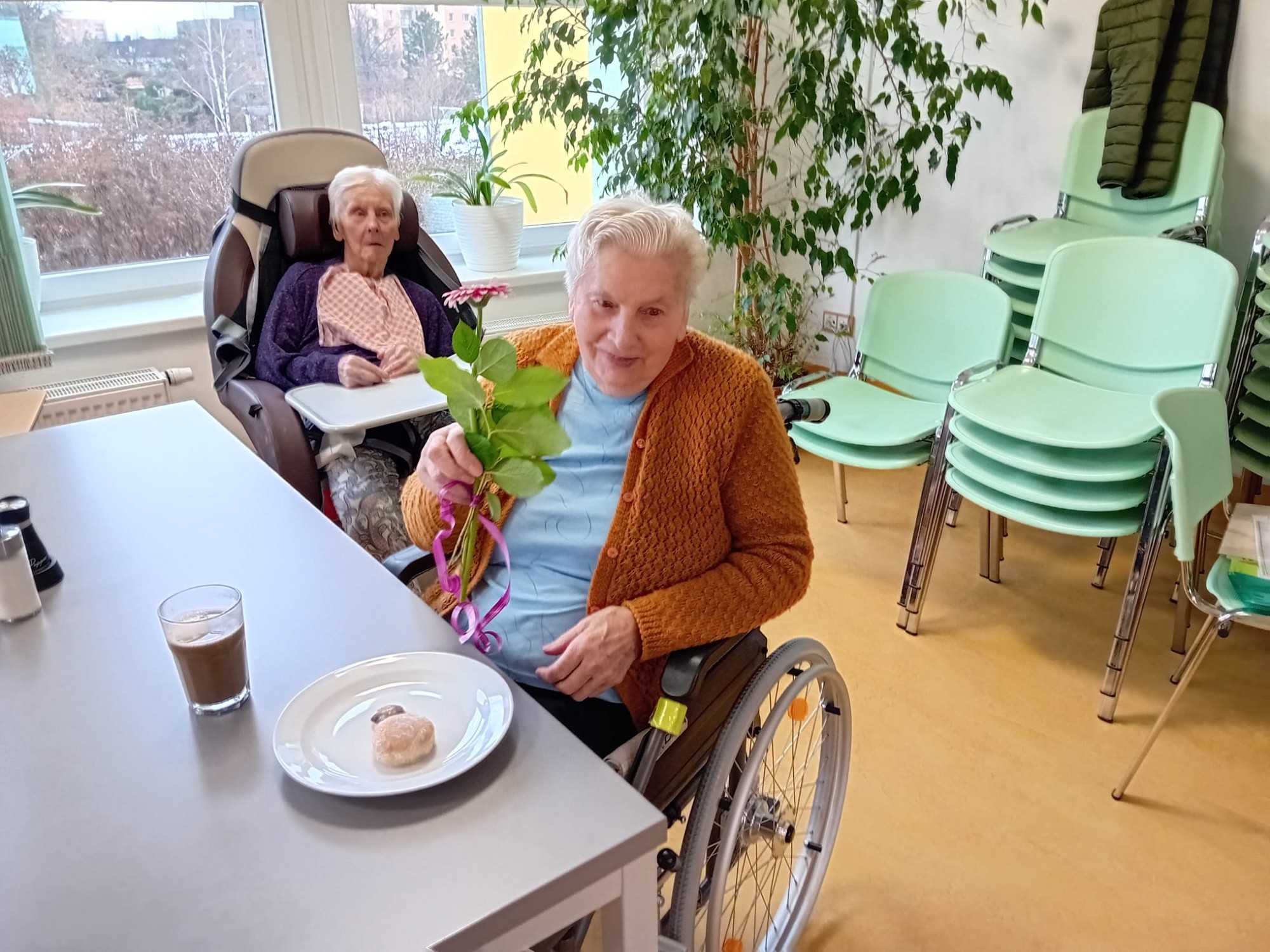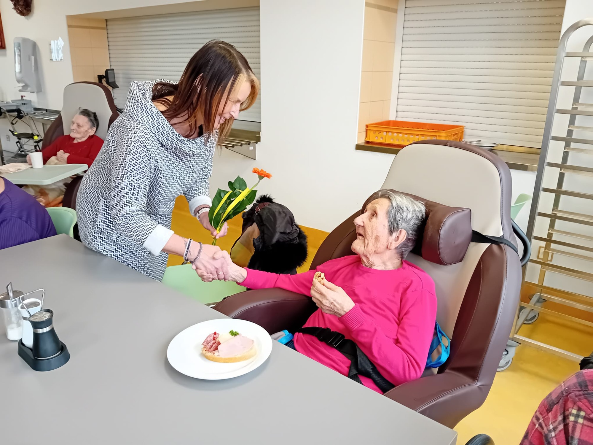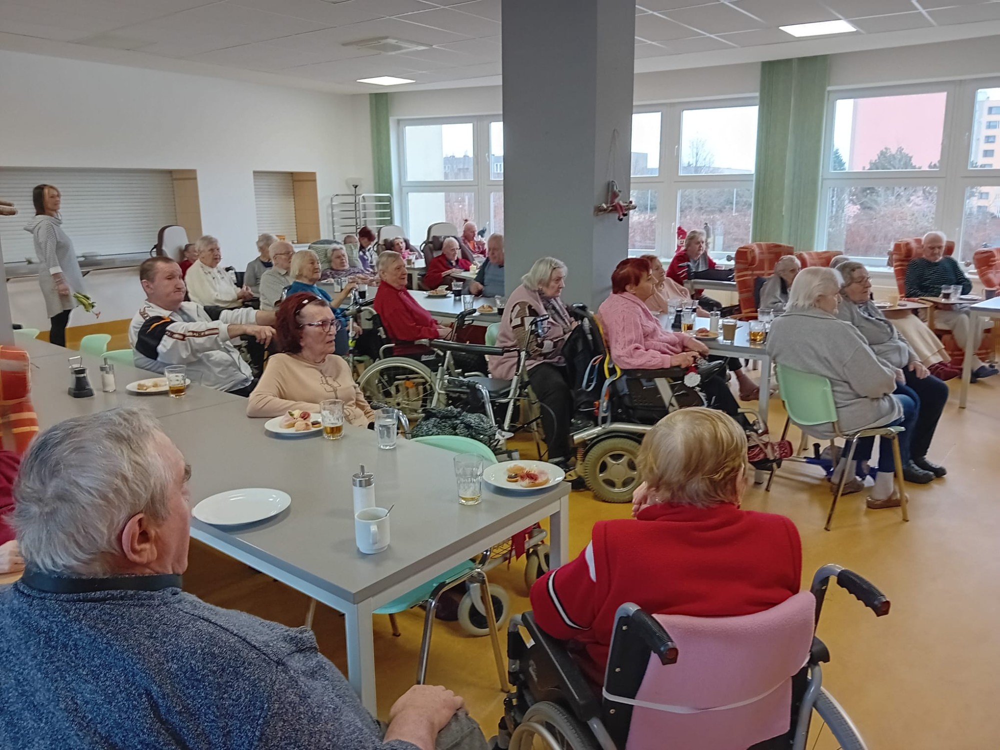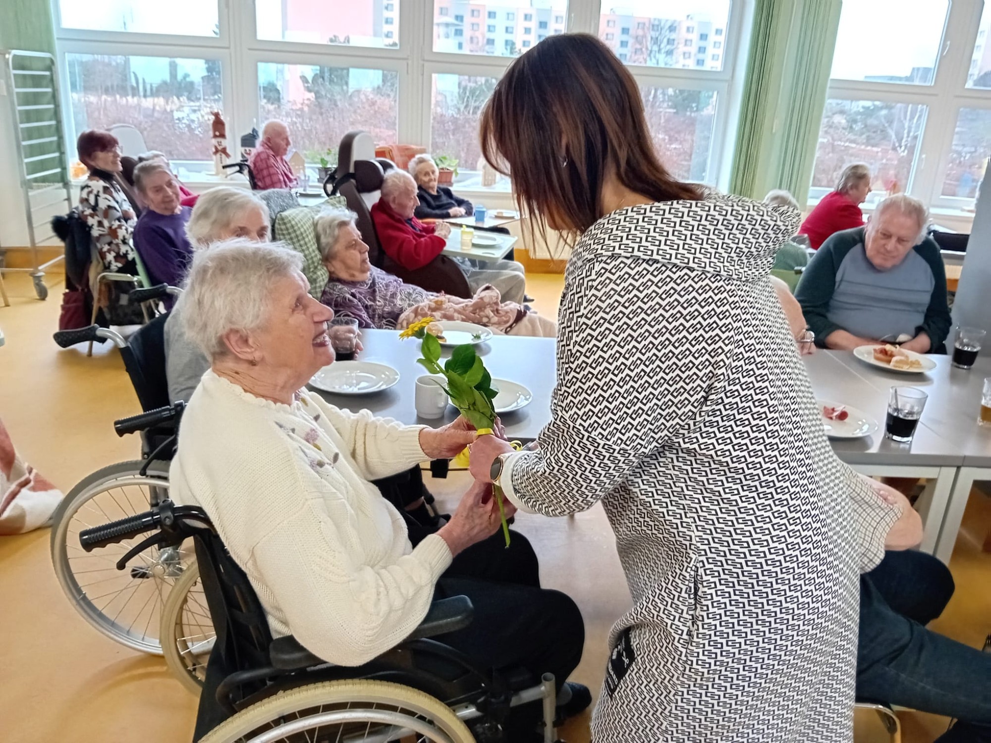 Narozeninovou květinu tentokrát převzalo hned deset oslavenců a o slavnostní atmosféru nebyla nouze. Nechyběl tradiční chlebíček ani oblíbené písničky v podání nám dobře známého harmonikáře pana Trnky.