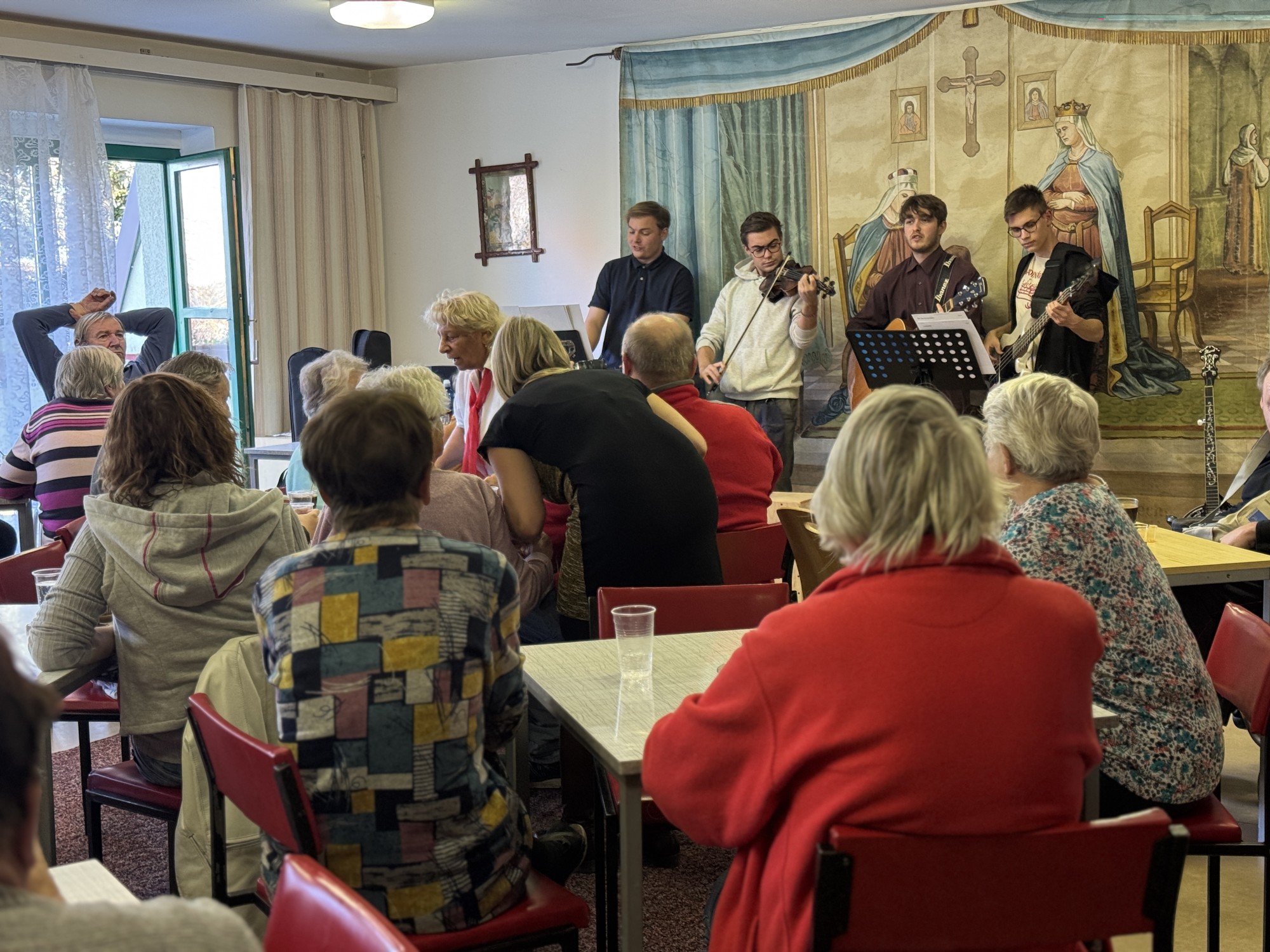 S energií sobě vlastní rozezpívali i roztleskali celé publikum a během chvíle se z kulturní místnosti stal malý koncertní sál plný úsměvů. Nechyběly známé melodie, společné zpívání a potlesk, který by zahřál každé muzikantské srdce.