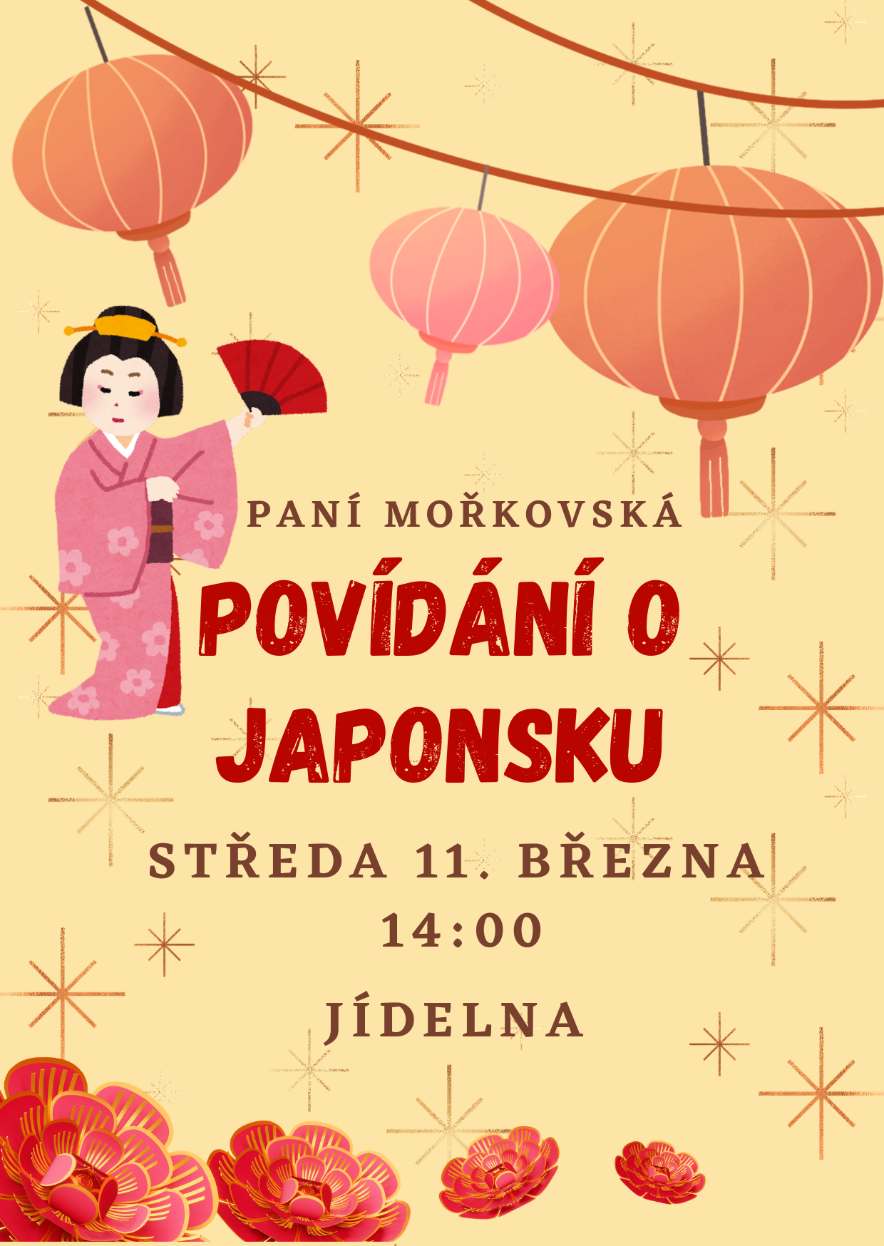 Vyprávět o svých japonských zážitcích bude naše dobrovolnice paní Mořkovská.
