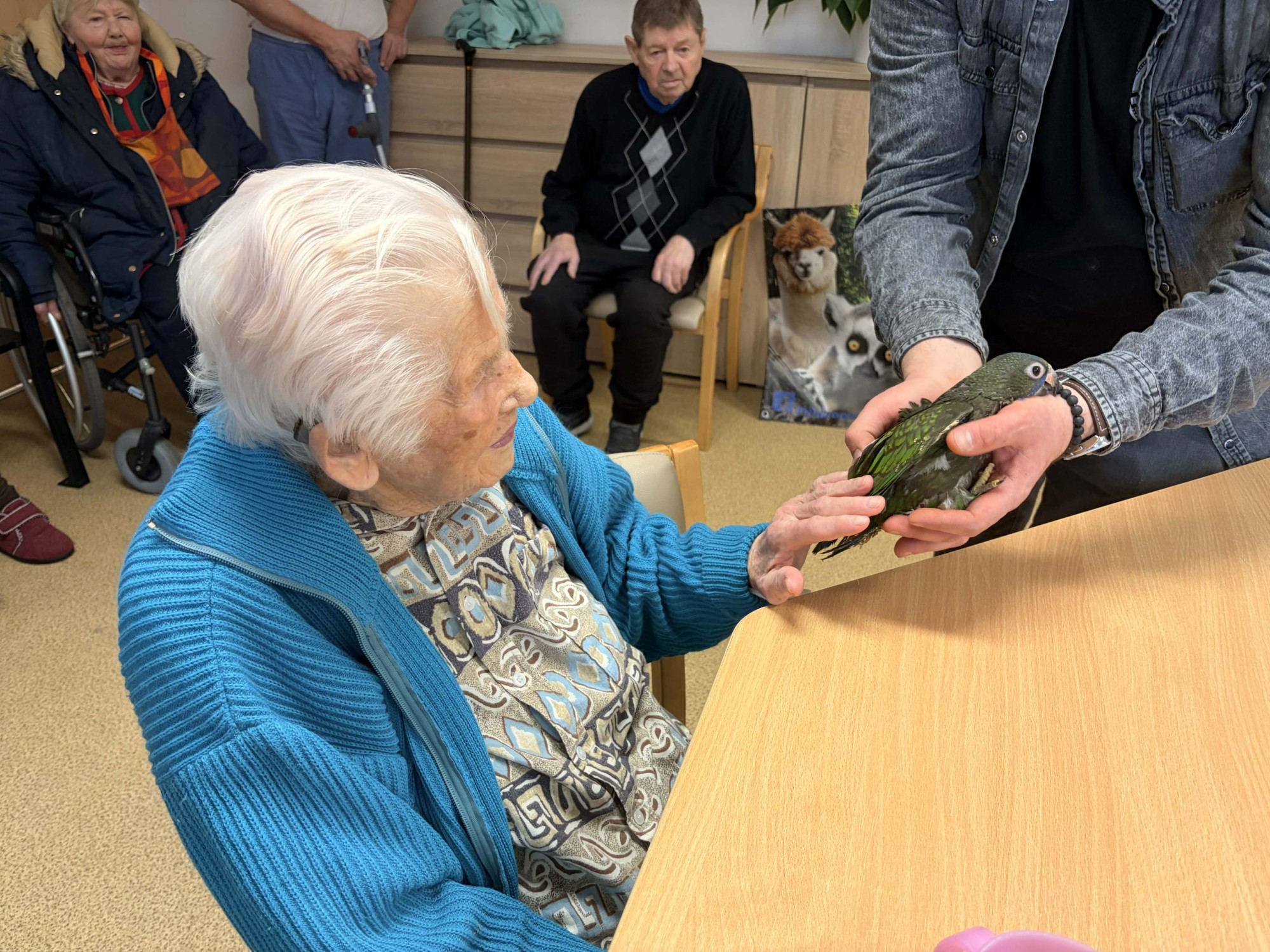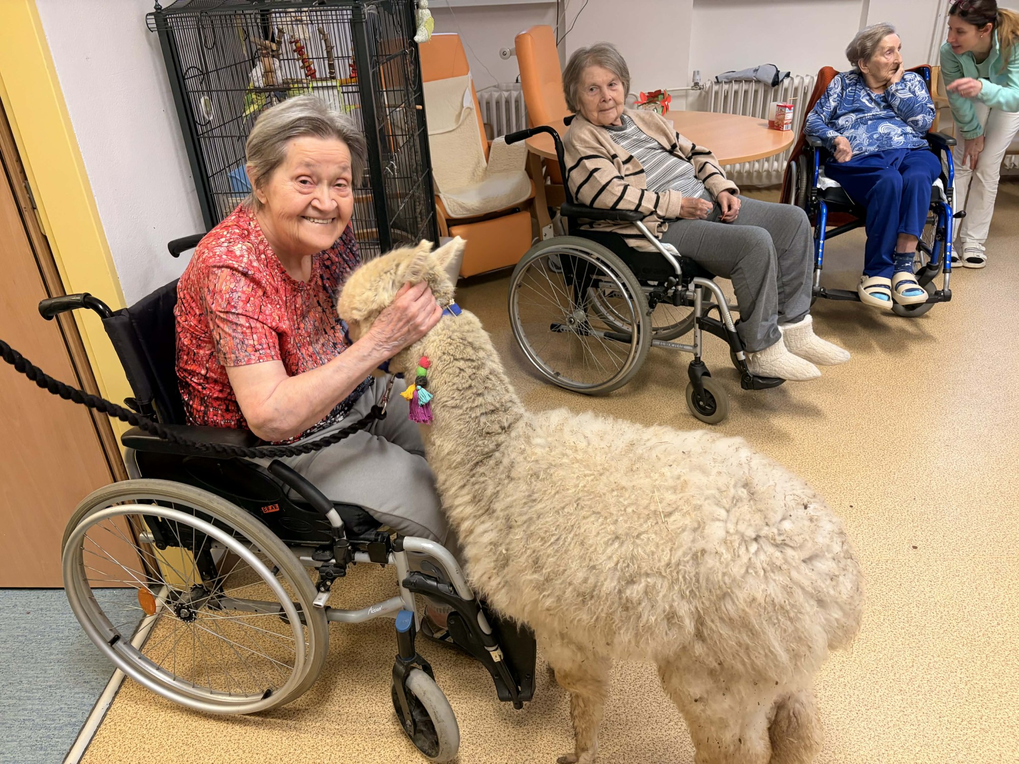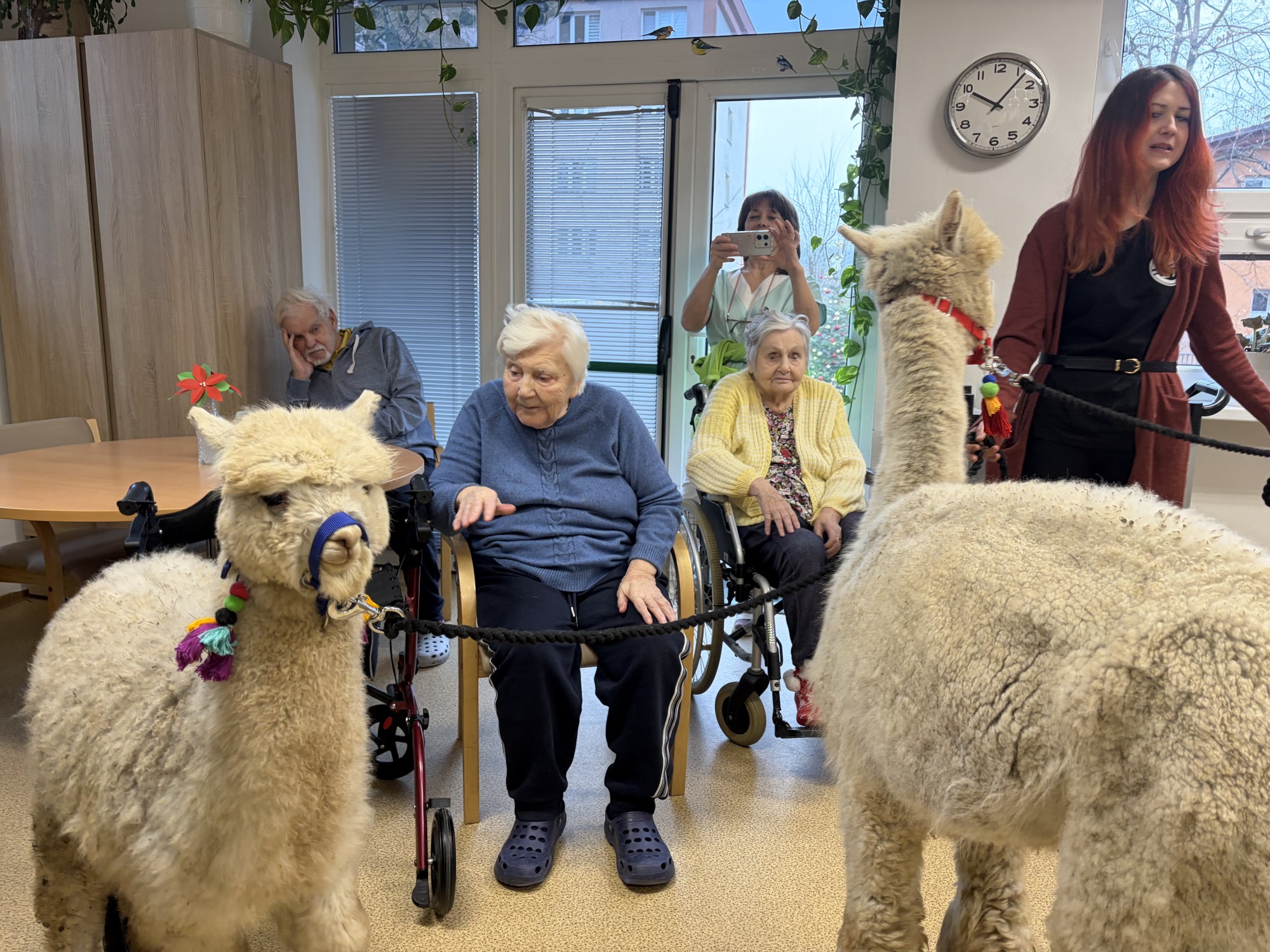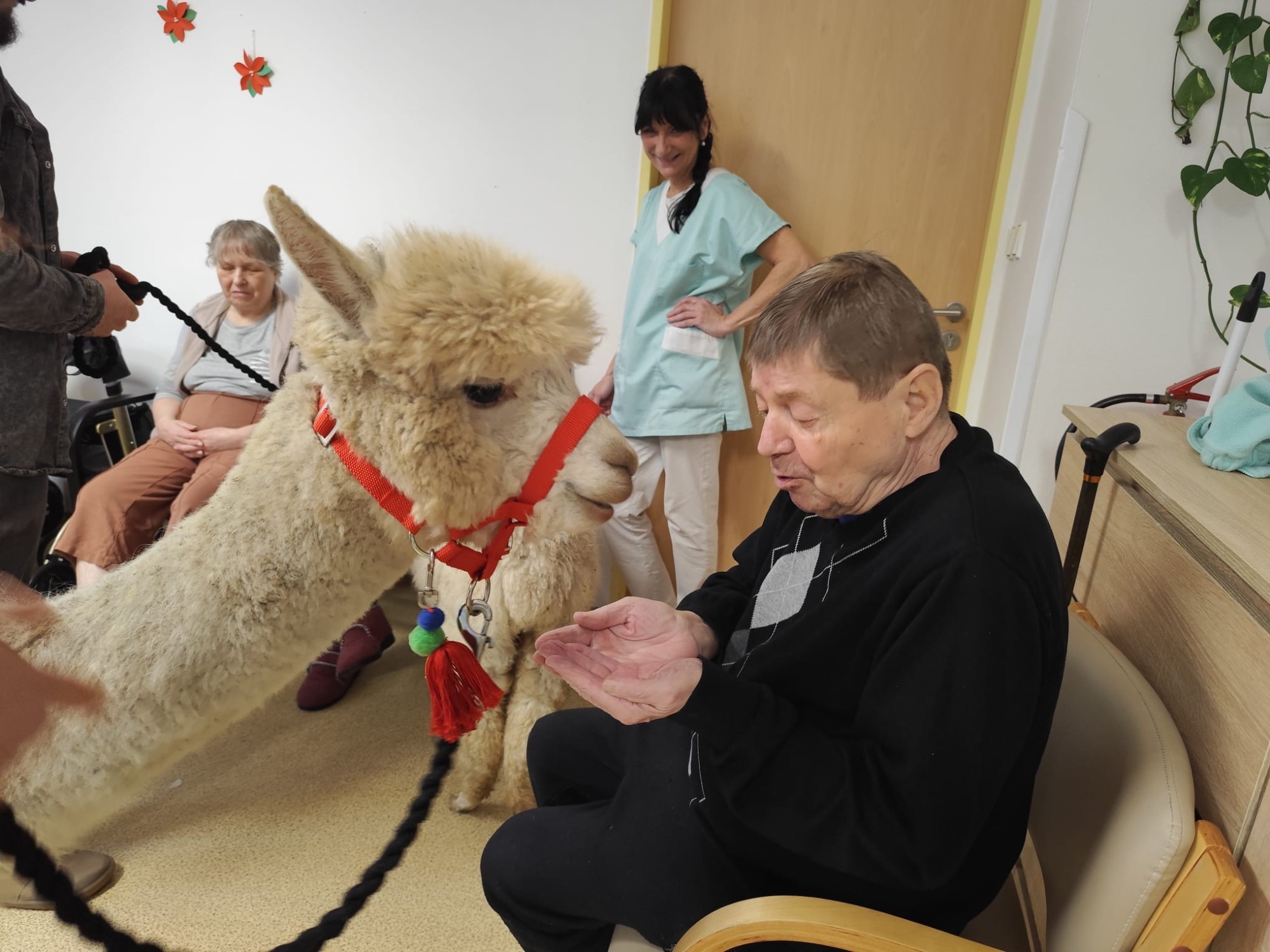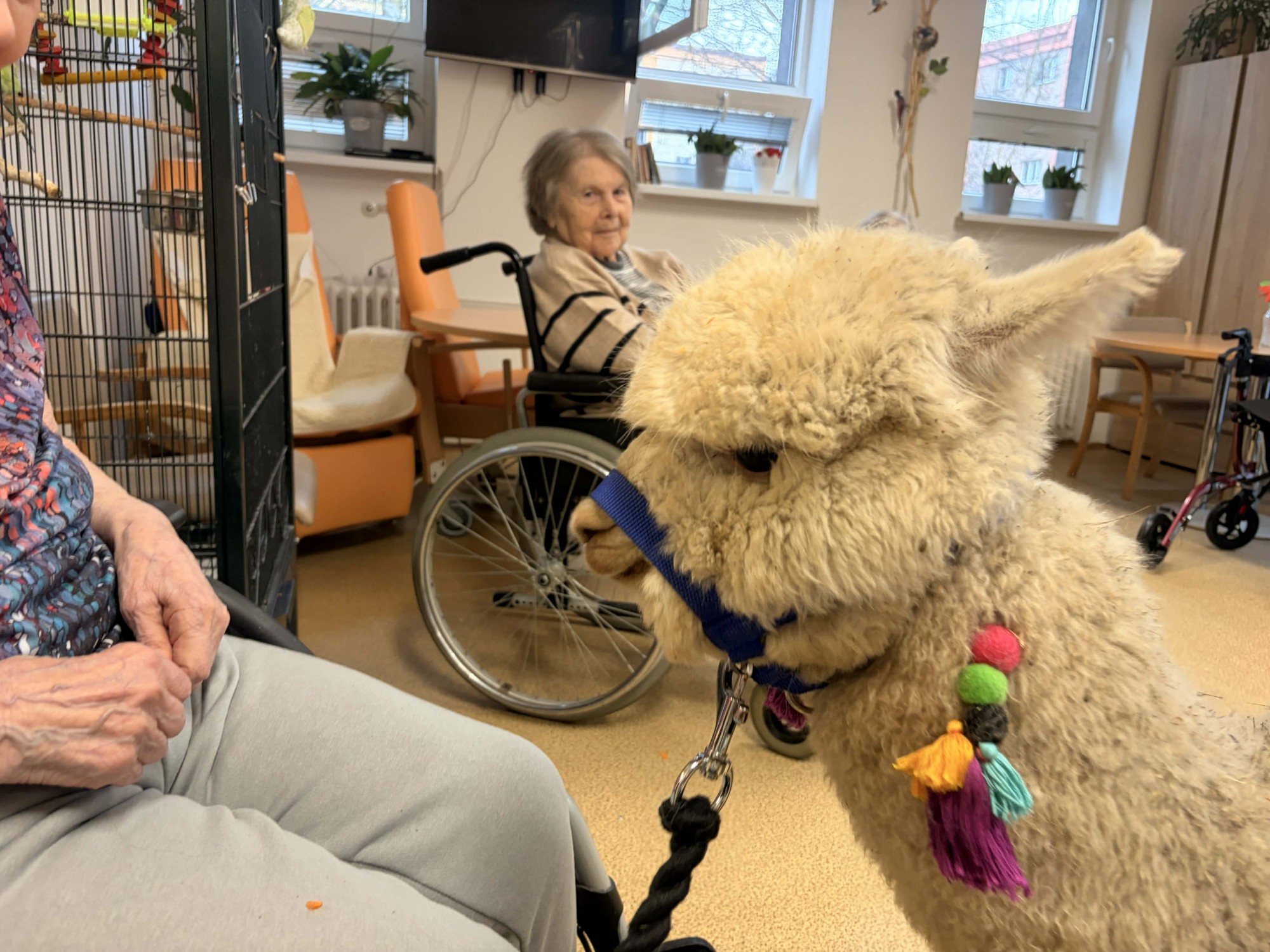 Do naší kulturní místnosti zavítala návštěva z Minizoo Vendryně a udělala nám opravdu velkou radost. Přivezli s sebou dvě alpaky, činčilu a papouška.