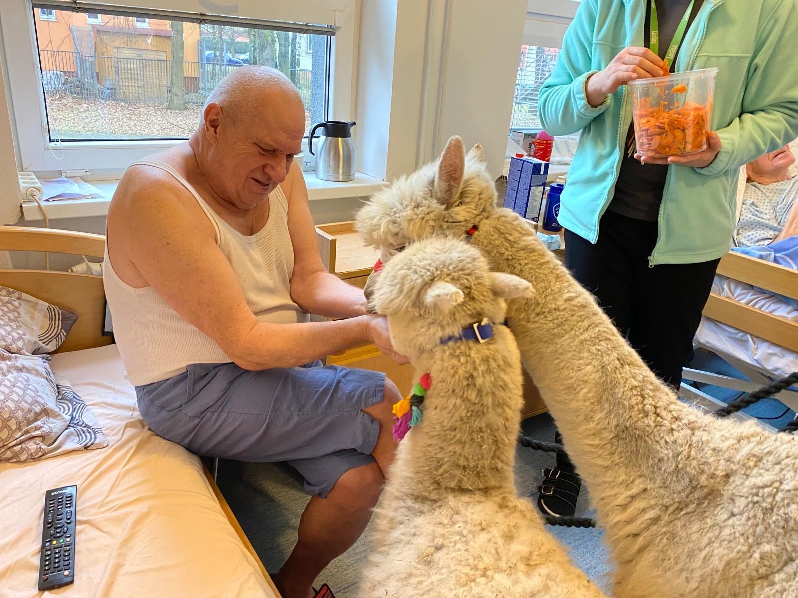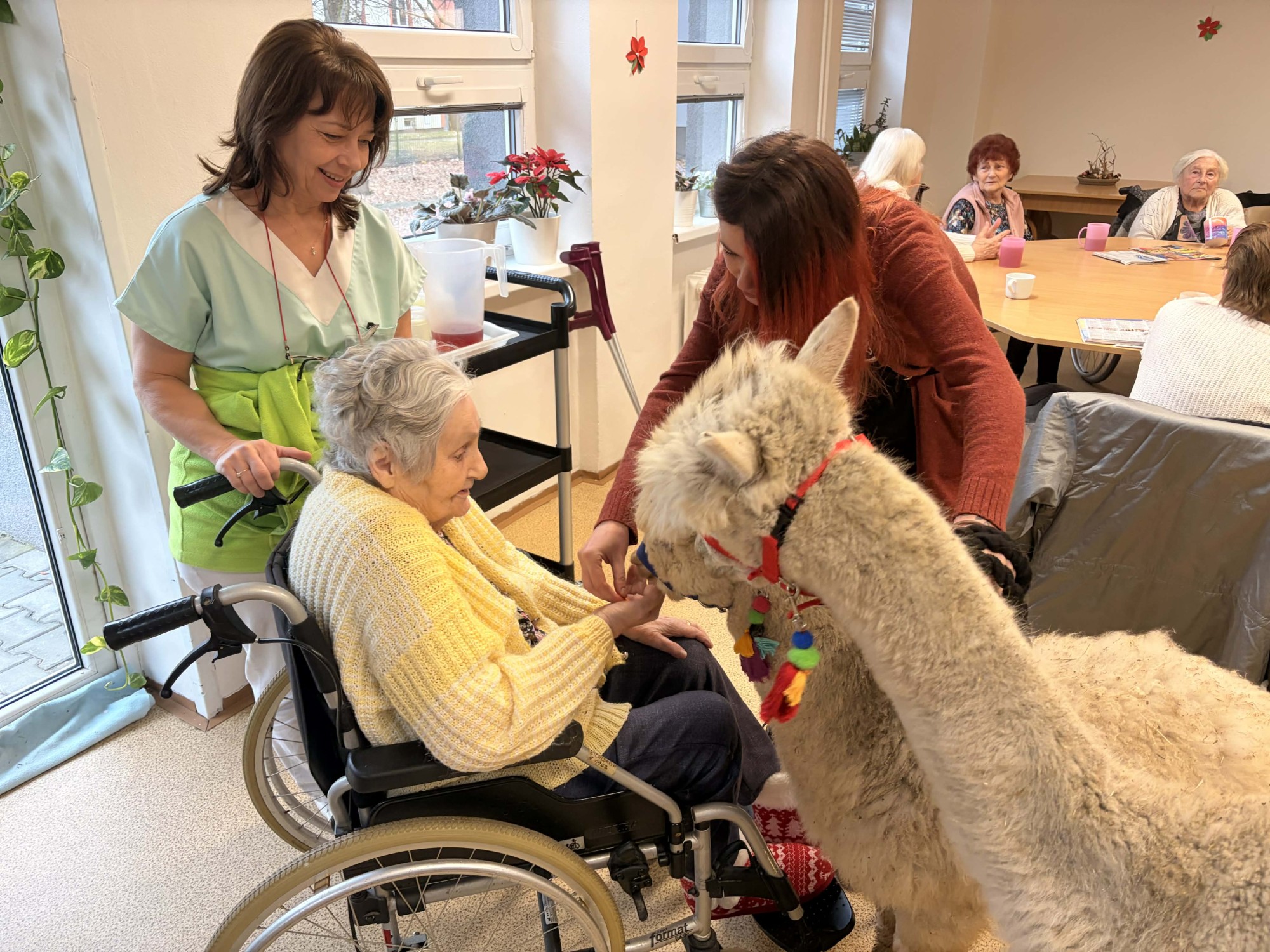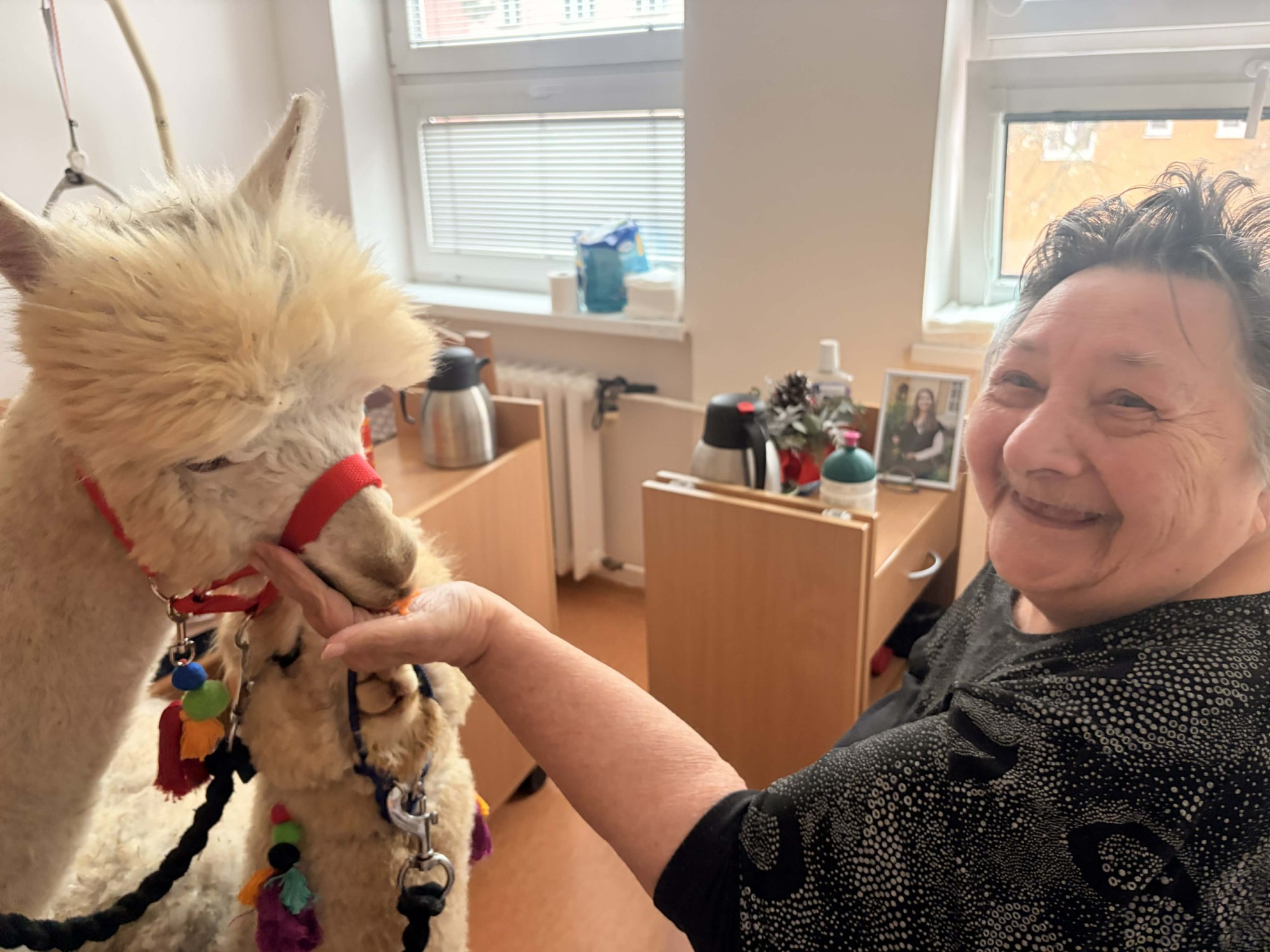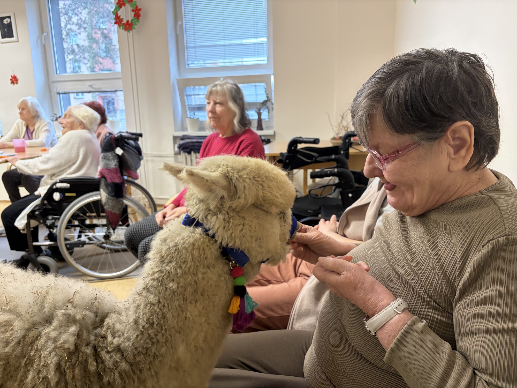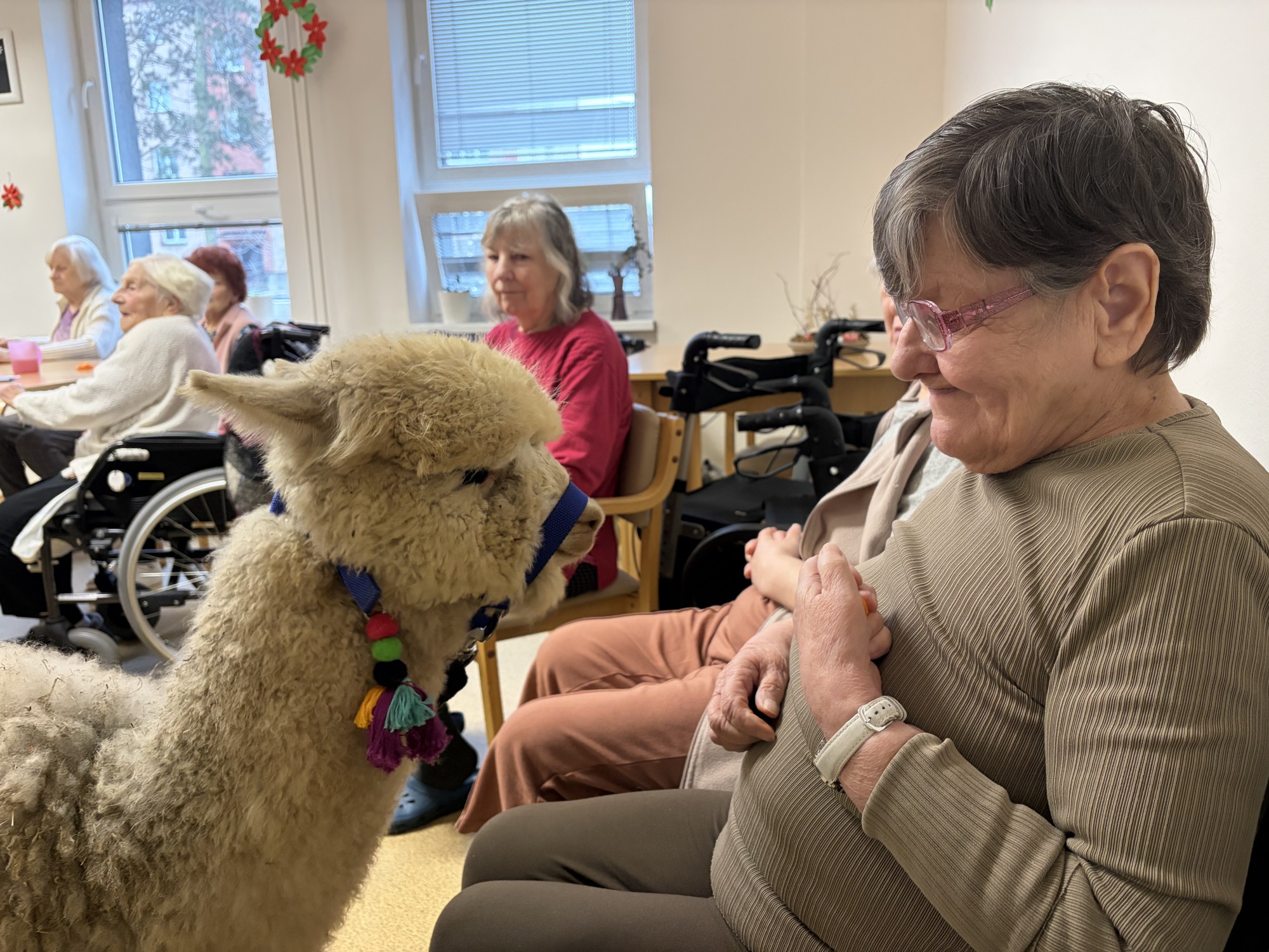 Do naší kulturní místnosti zavítala návštěva z Minizoo Vendryně a udělala nám opravdu velkou radost. Přivezli s sebou dvě alpaky, činčilu a papouška.