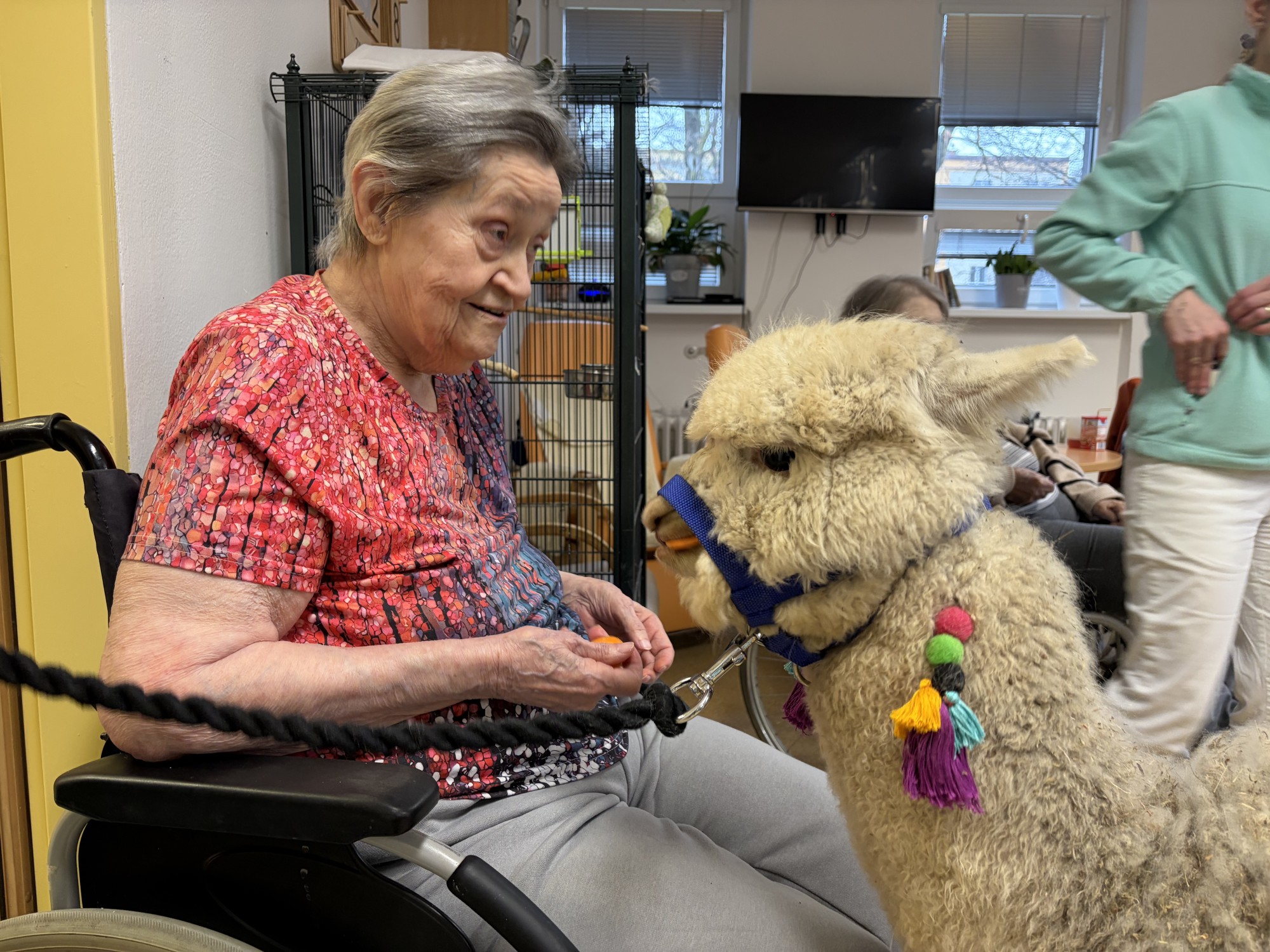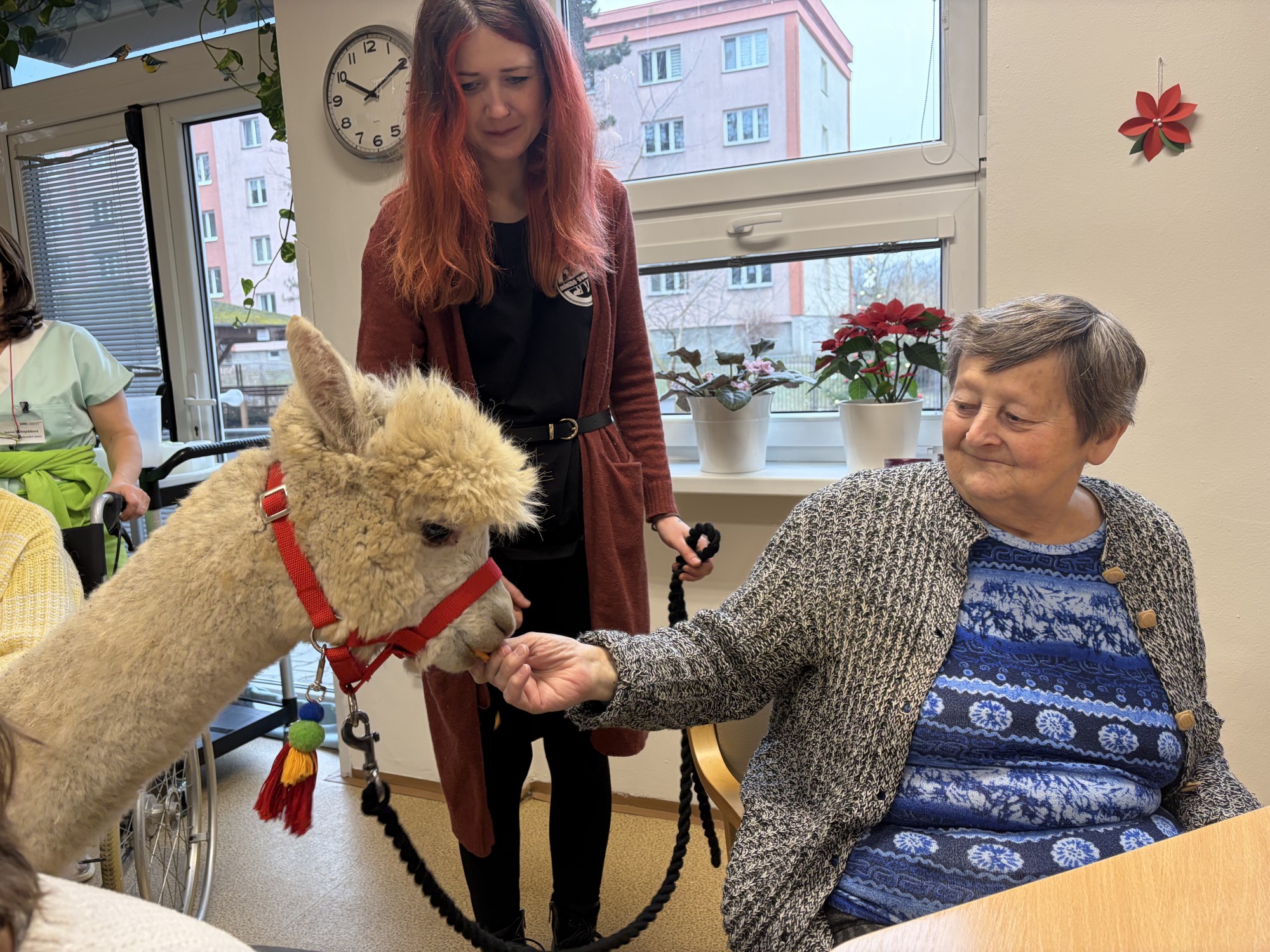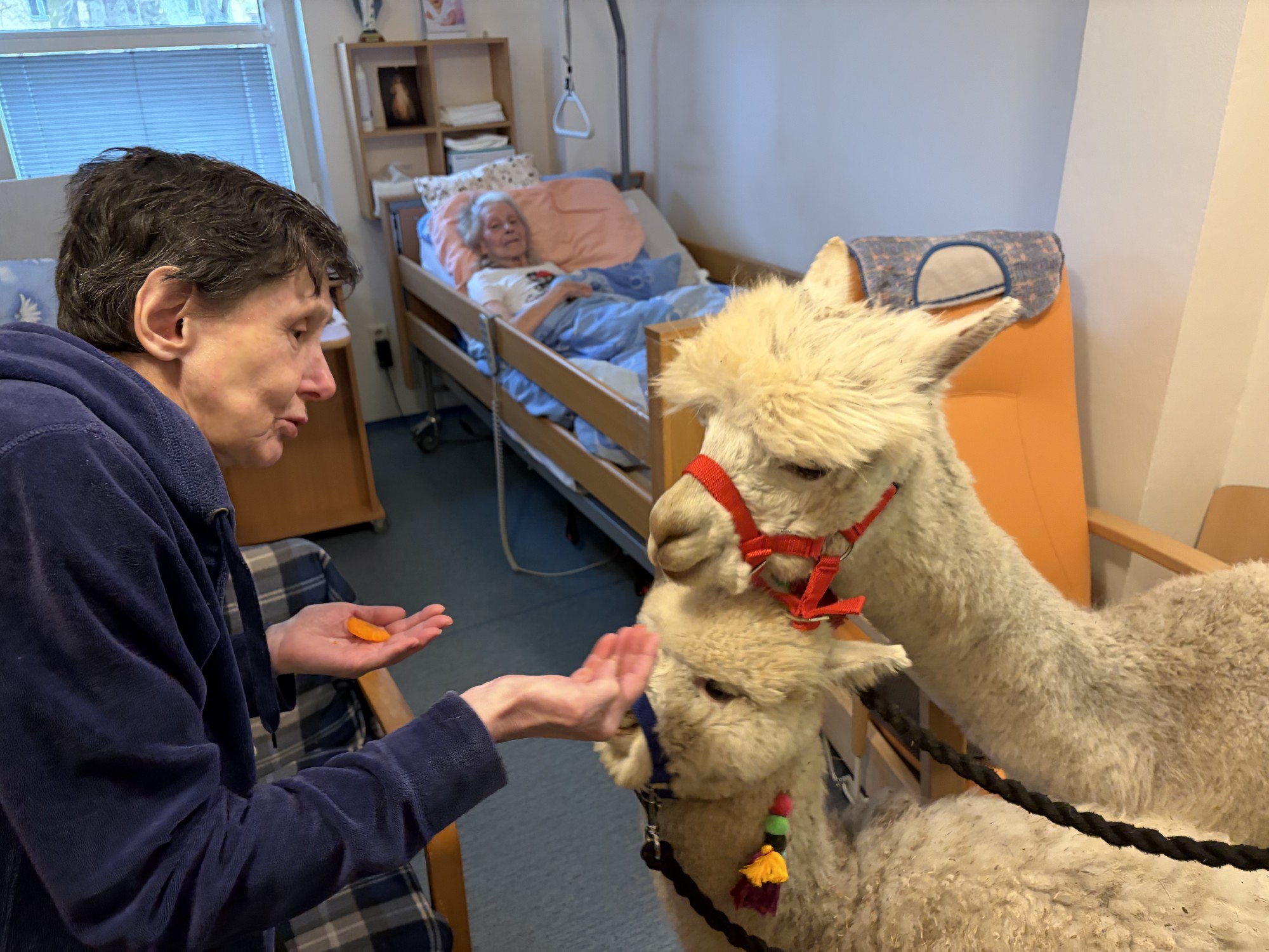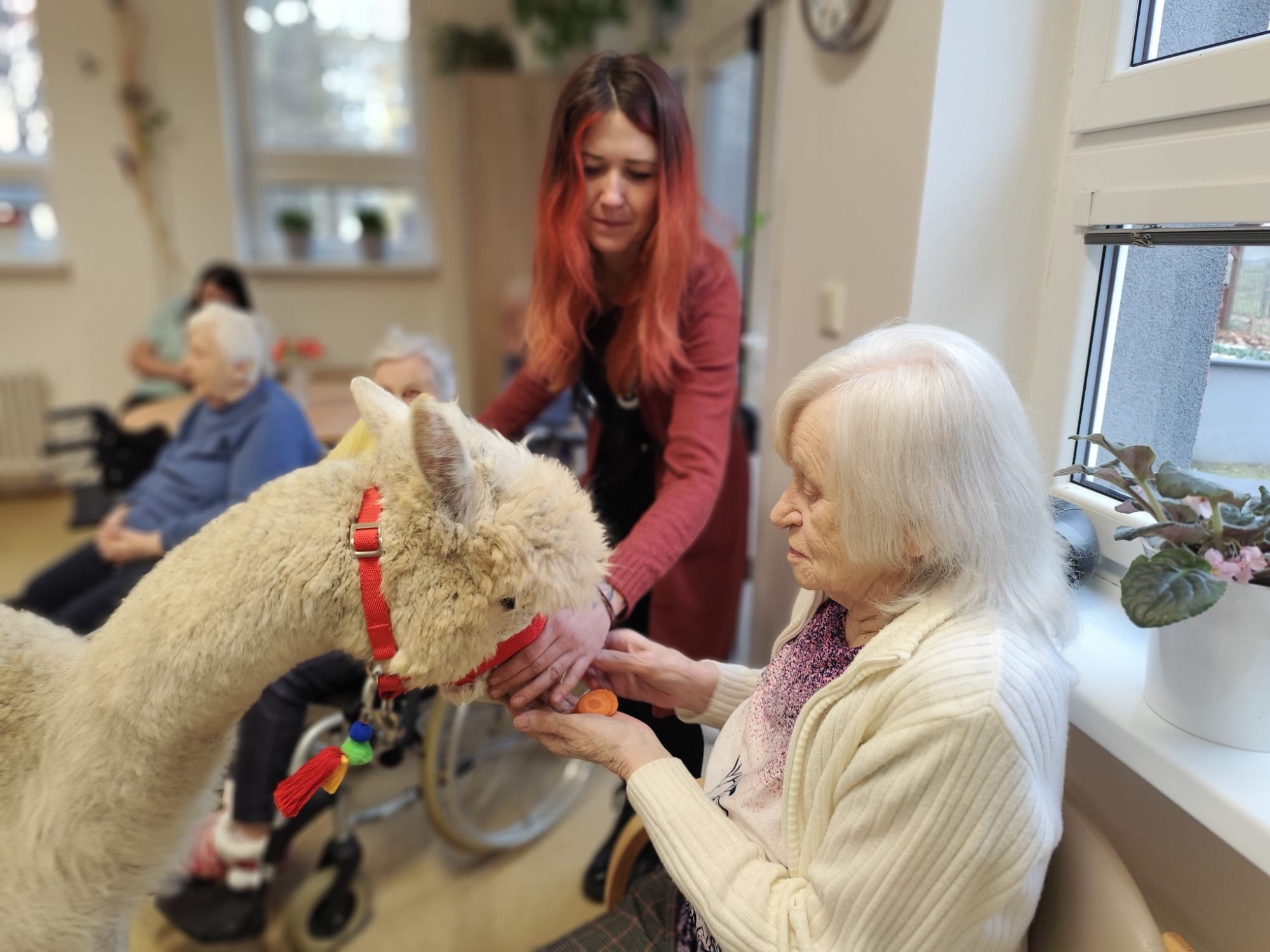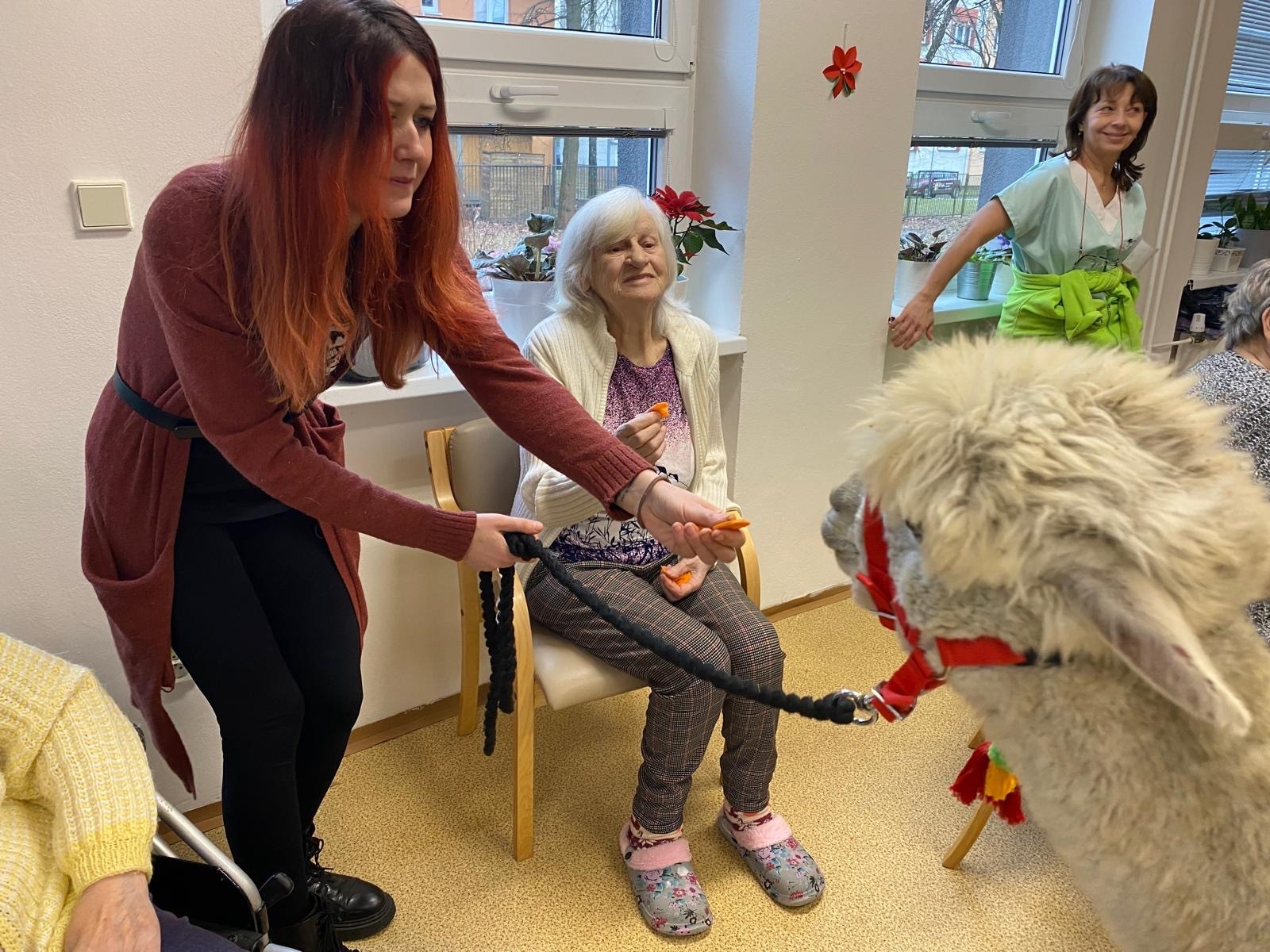 Do naší kulturní místnosti zavítala návštěva z Minizoo Vendryně a udělala nám opravdu velkou radost. Přivezli s sebou dvě alpaky, činčilu a papouška.