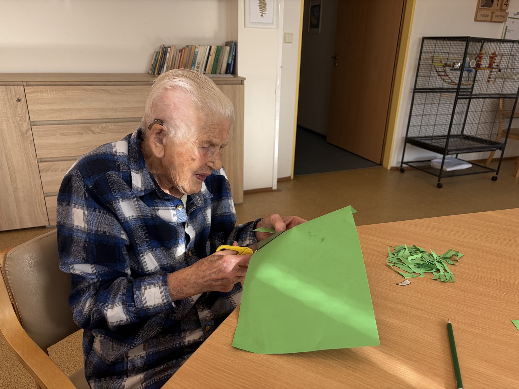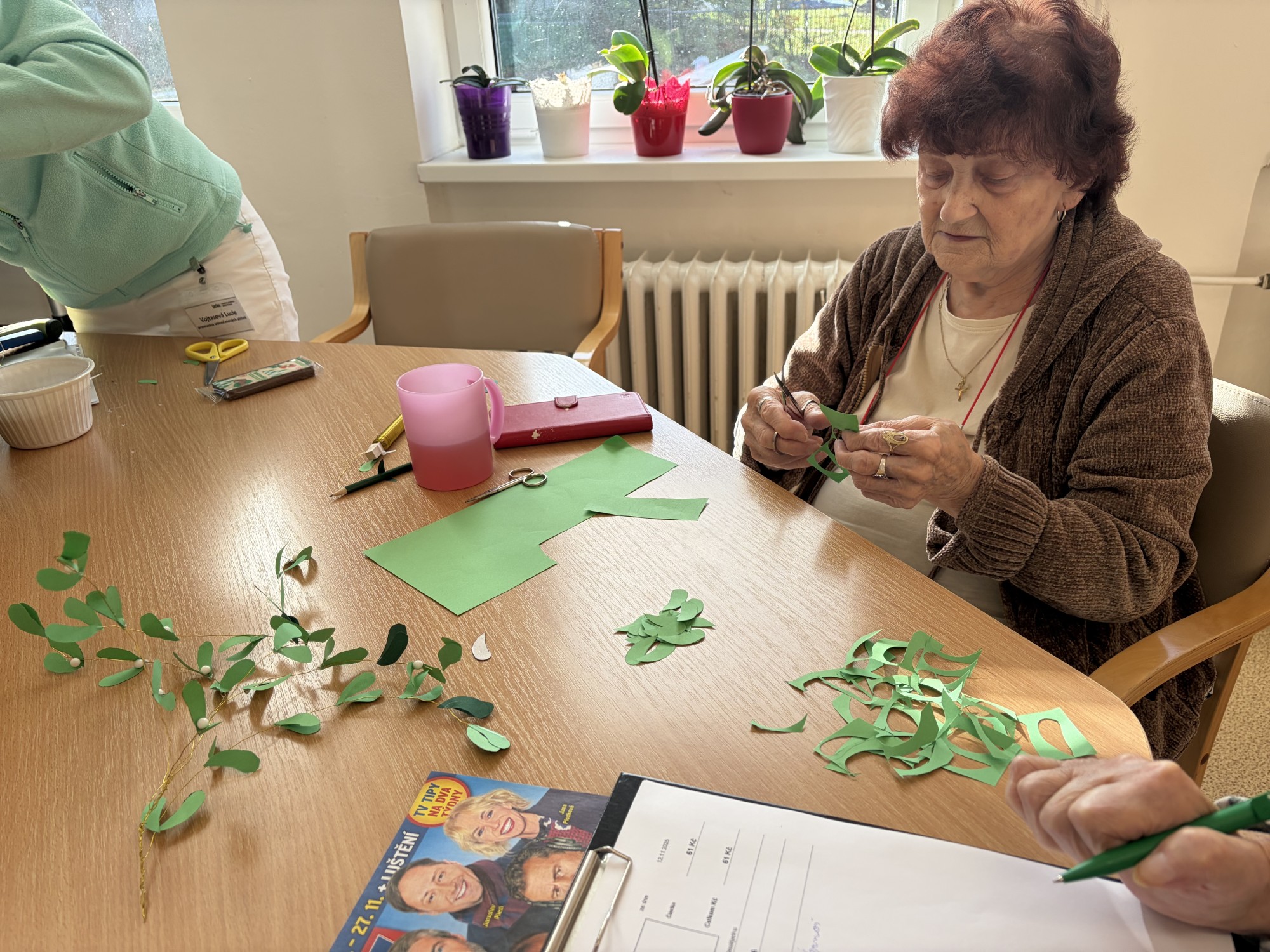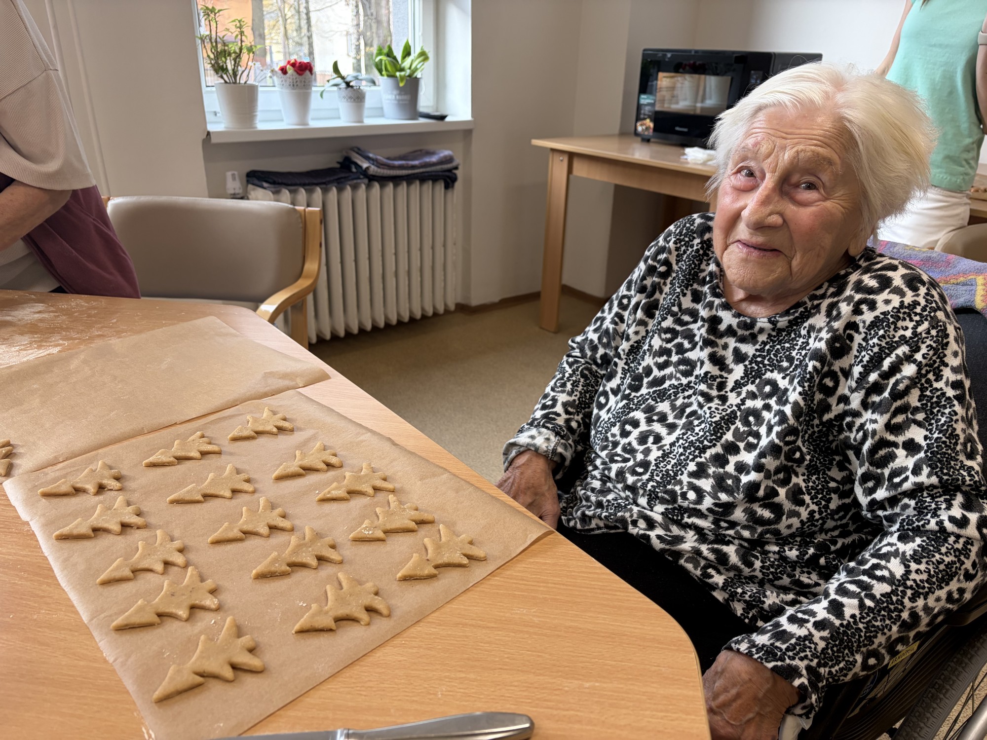 V našem Domově pokračujeme ve vánočním tvoření. Tentokrát jsme si připravili malé tvořivé dopoledne, během kterého jsme stříhali papírové jmelí, vybarvovali vánoční baňky a pustili se také do pečení perníčků na blížící se vánoční trhy.