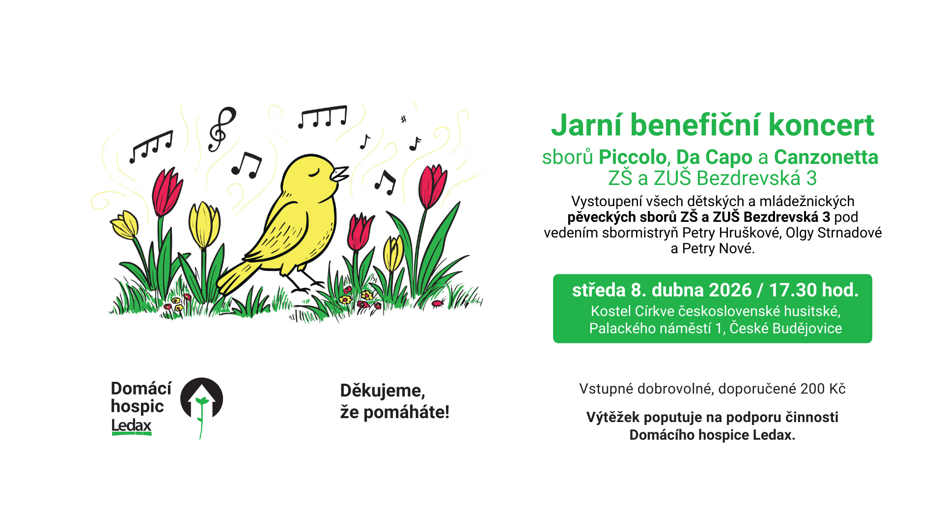 Už je tradicí, že na jaře zpívají na podporu Domácího hospice Ledax dětské i mládežnické pěvecké sbory ZŠ a ZUŠ Bezdrevská 3.