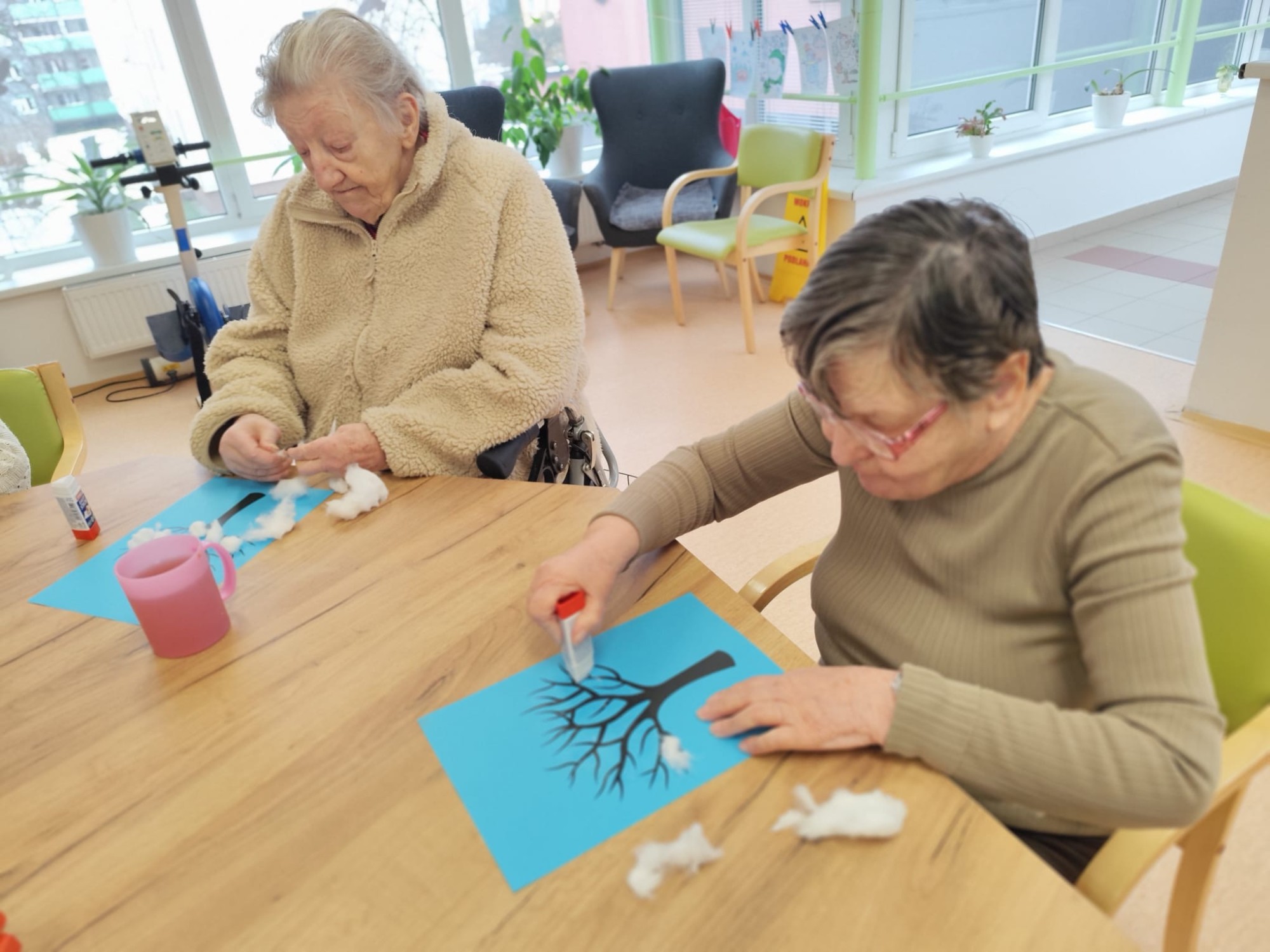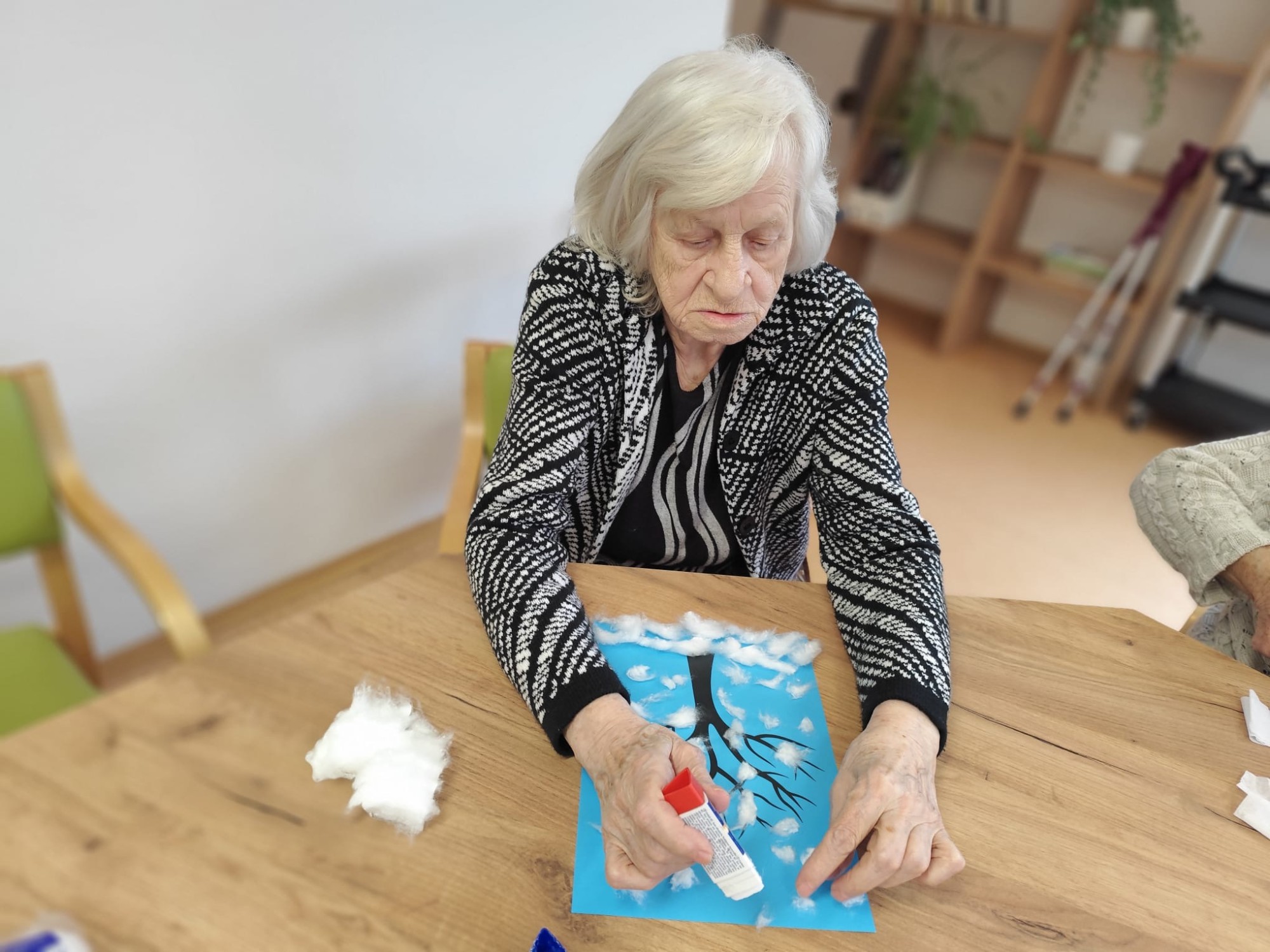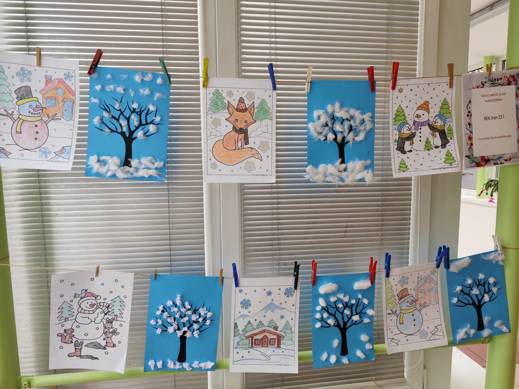 Zimní období u nás stále vládne, a tak se sněhová nálada přestěhovala i na nástěnku v naší kulturní místnosti. Pustili jsme se do tvoření zimní krajiny.