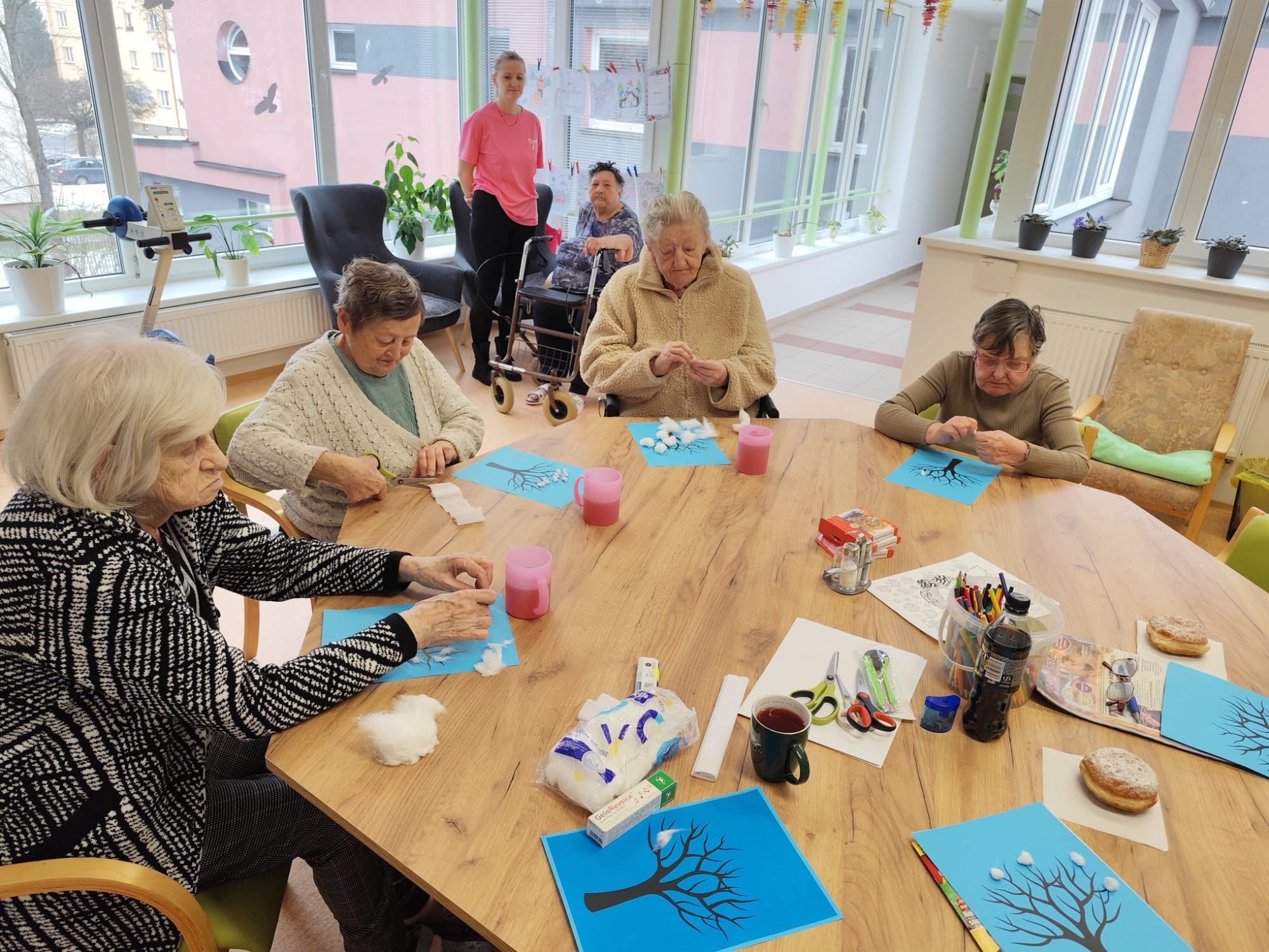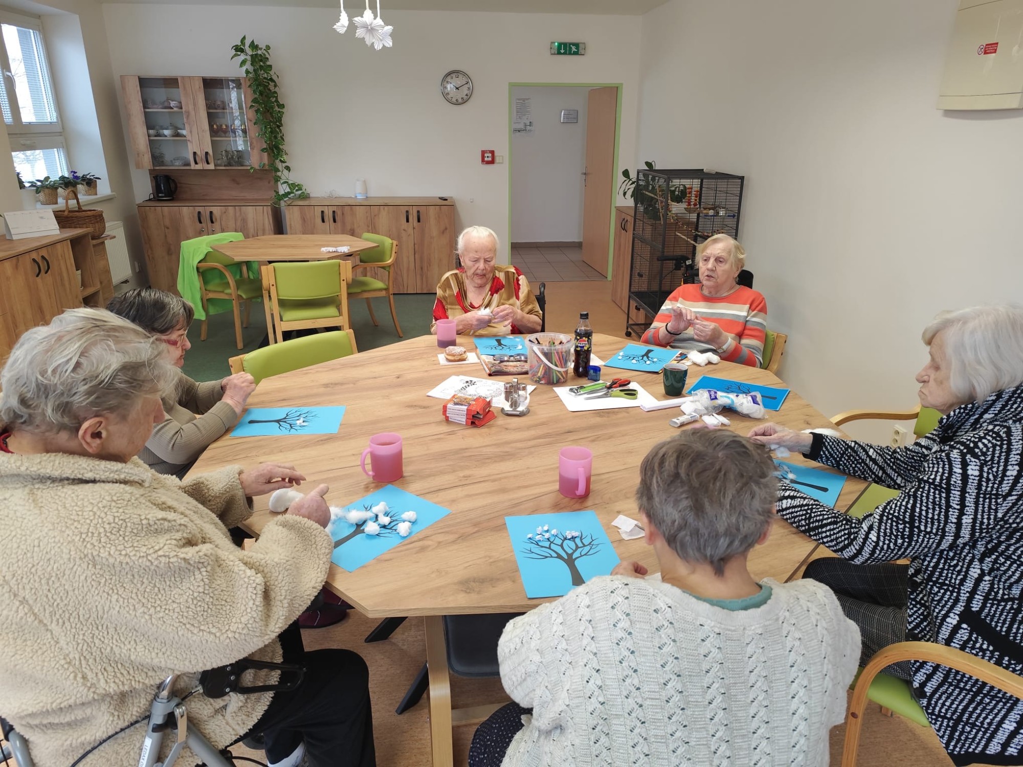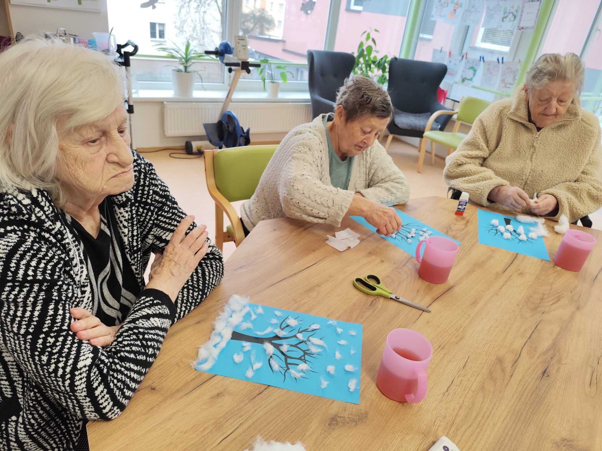 Zimní období u nás stále vládne, a tak se sněhová nálada přestěhovala i na nástěnku v naší kulturní místnosti. Pustili jsme se do tvoření zimní krajiny.