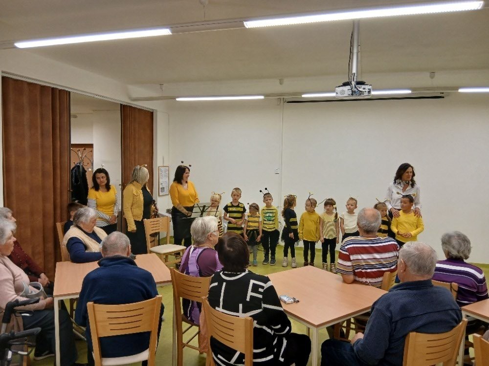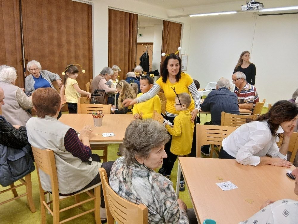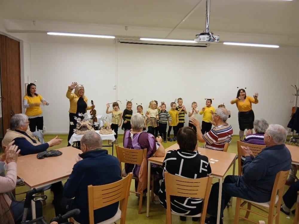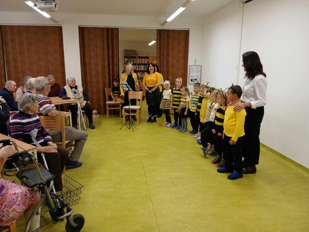 Říjnová návštěva dětí v Domě s pečovatelskou službou Dačice byla tentokrát tématická - uspávaly se včelky.