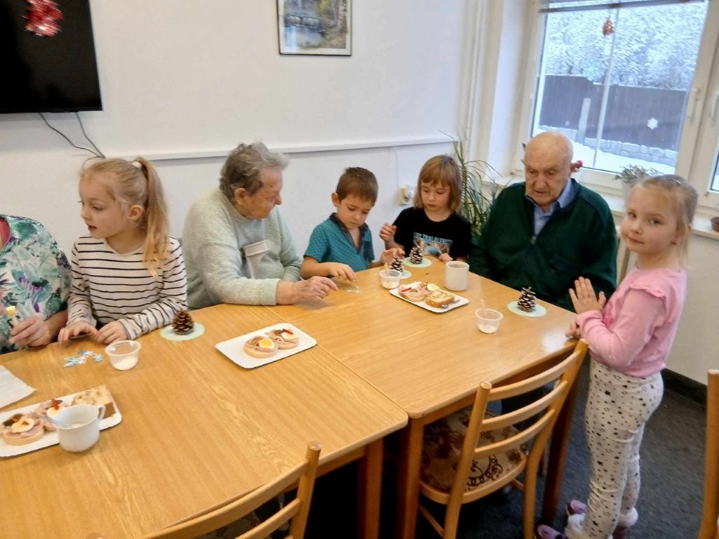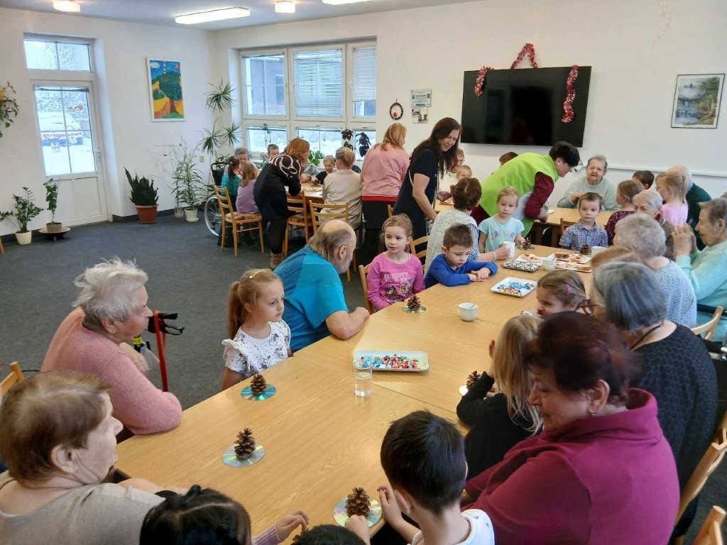 Klienti pečovatelské služby Ledax ve Studené prožili krásné odpoledne. Dorazily za nimi děti, které jim zarecitovaly, a společně si poté vyrobili stromeček.