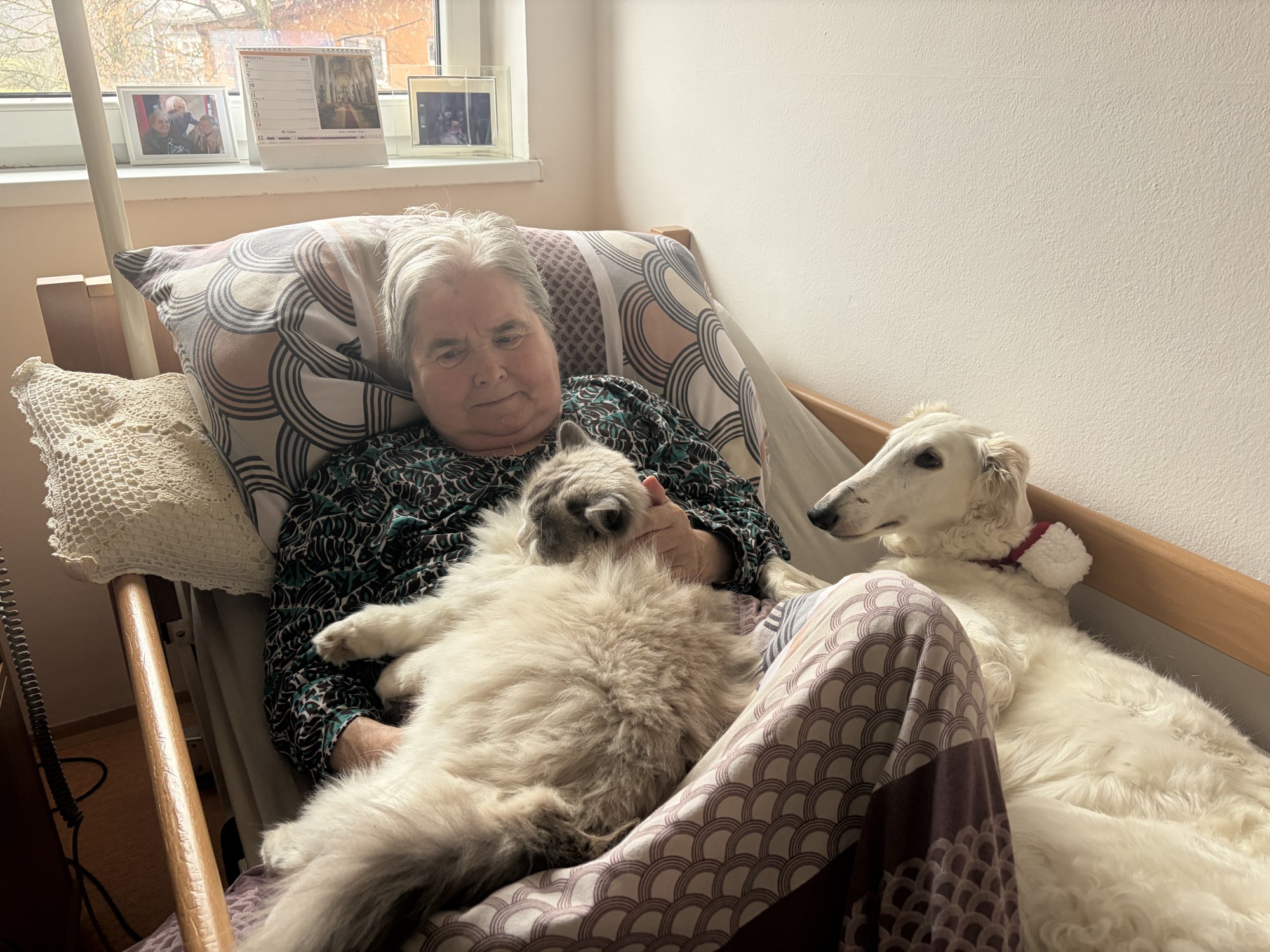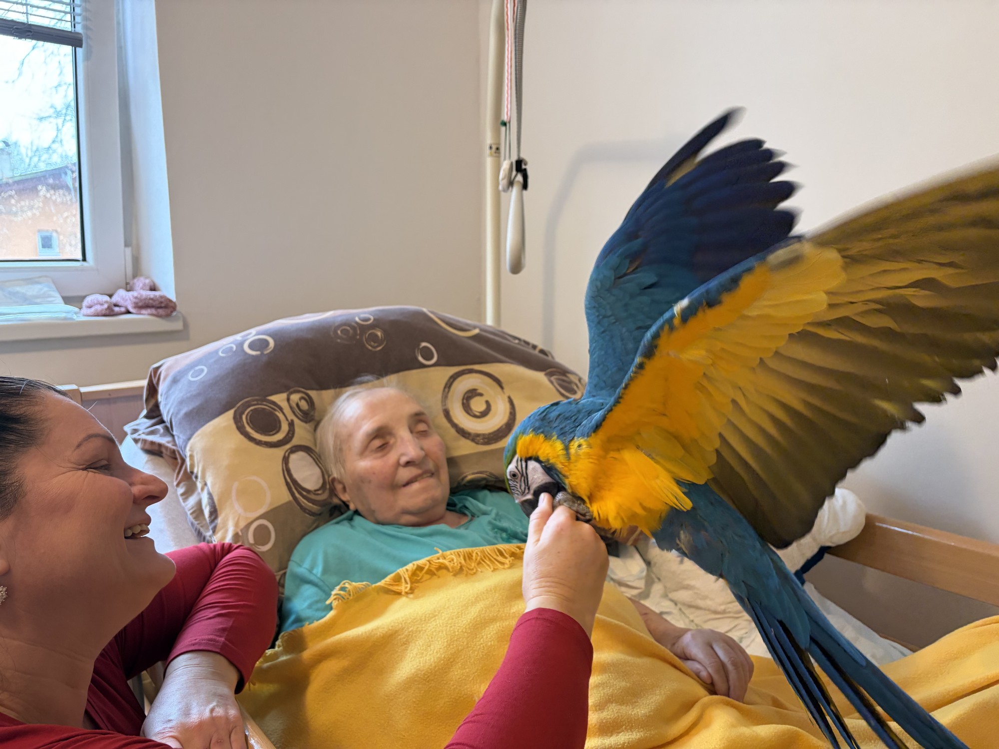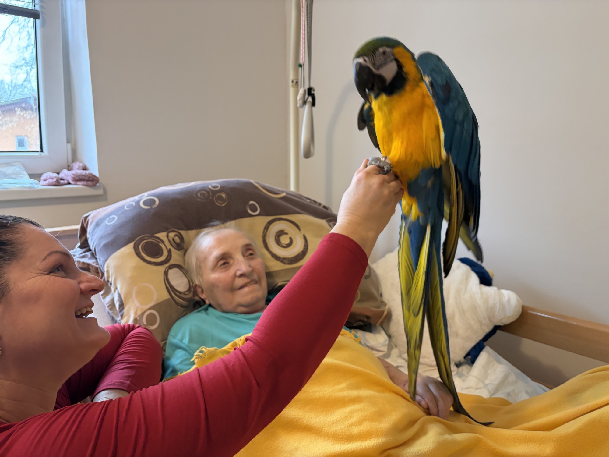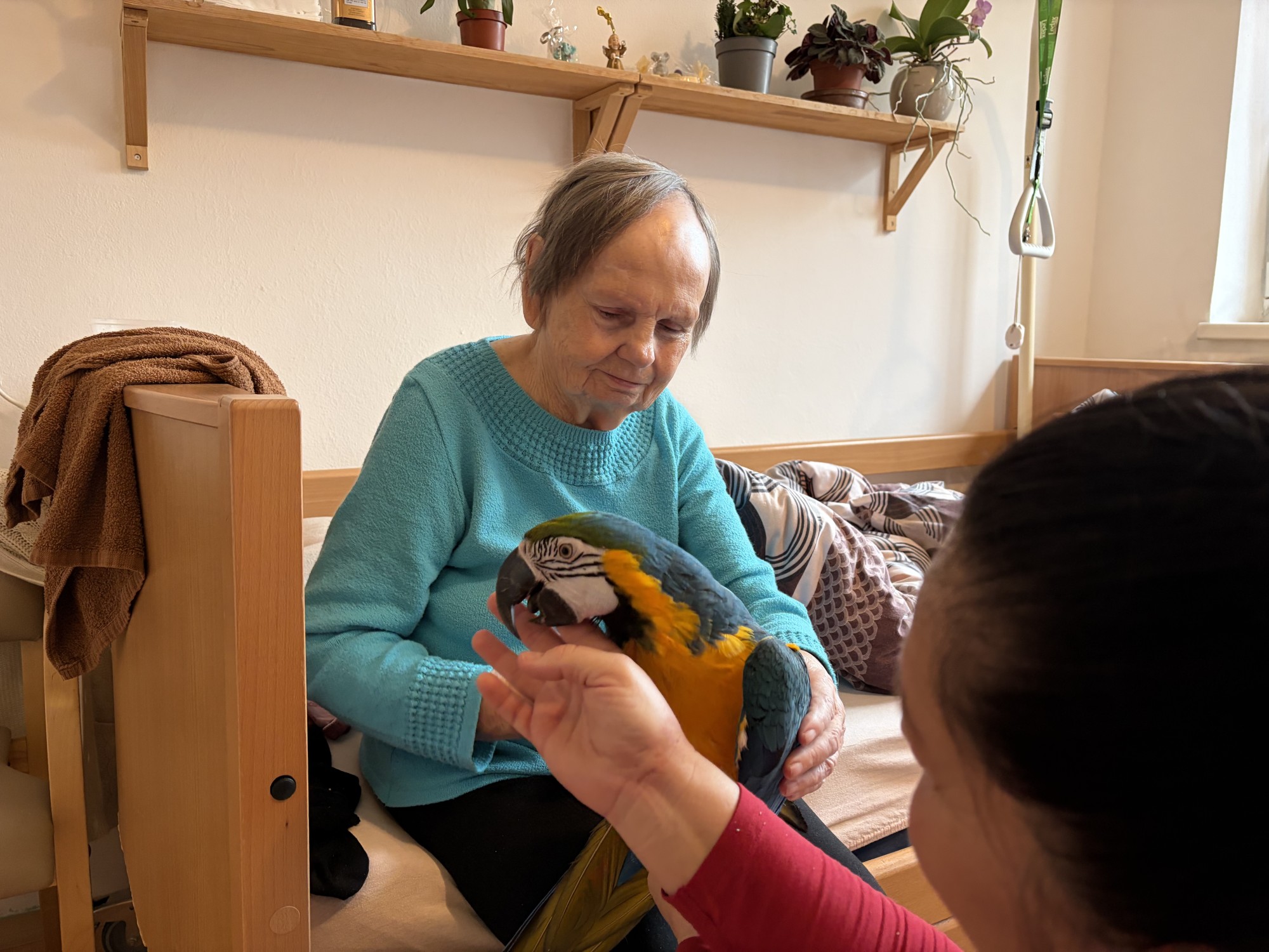Tentokrát za námi zvířátka přišla rovnou na pokoje. Individuální zooterapie potěšila každého zvlášť a umožnila klidné setkání v prostředí, kde se klienti cítí nejlépe.