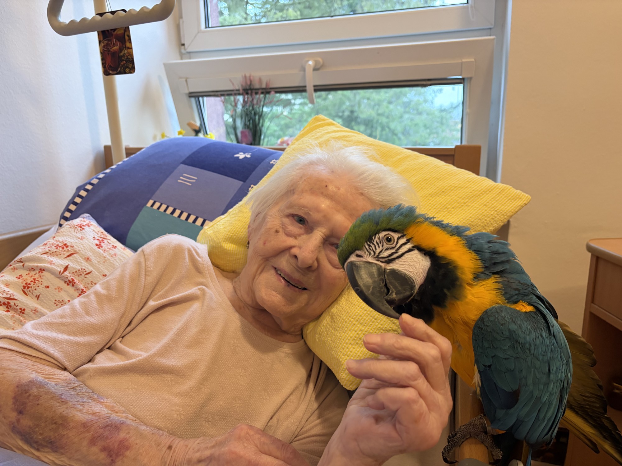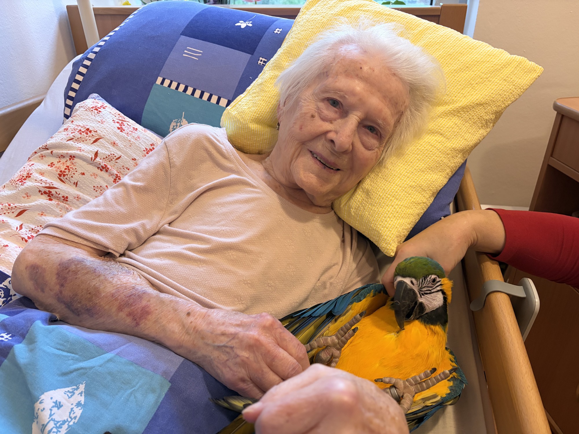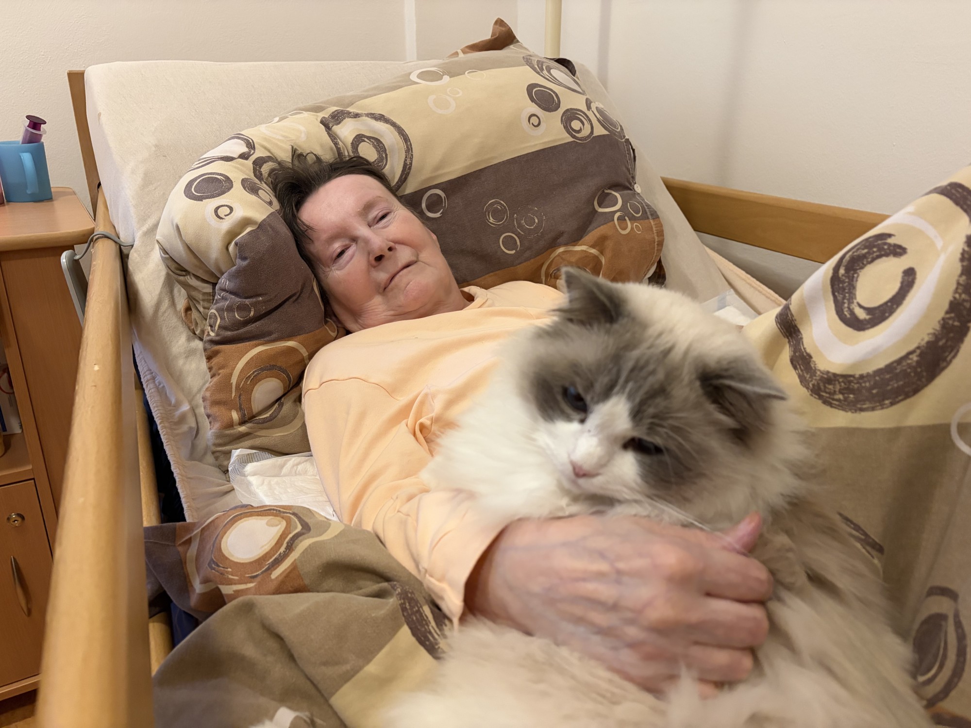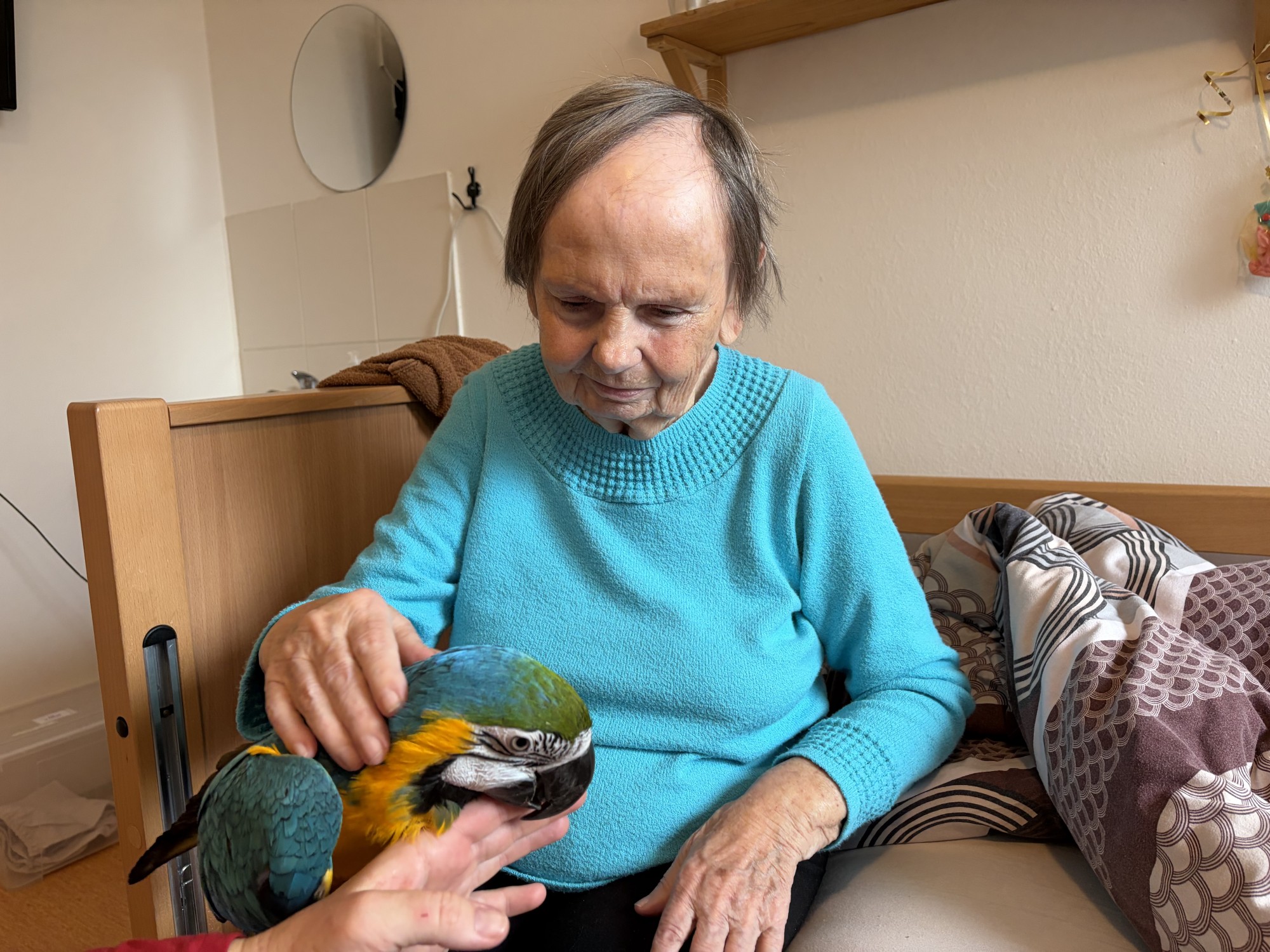 Tentokrát za námi zvířátka přišla rovnou na pokoje. Individuální zooterapie potěšila každého zvlášť a umožnila klidné setkání v prostředí, kde se klienti cítí nejlépe.